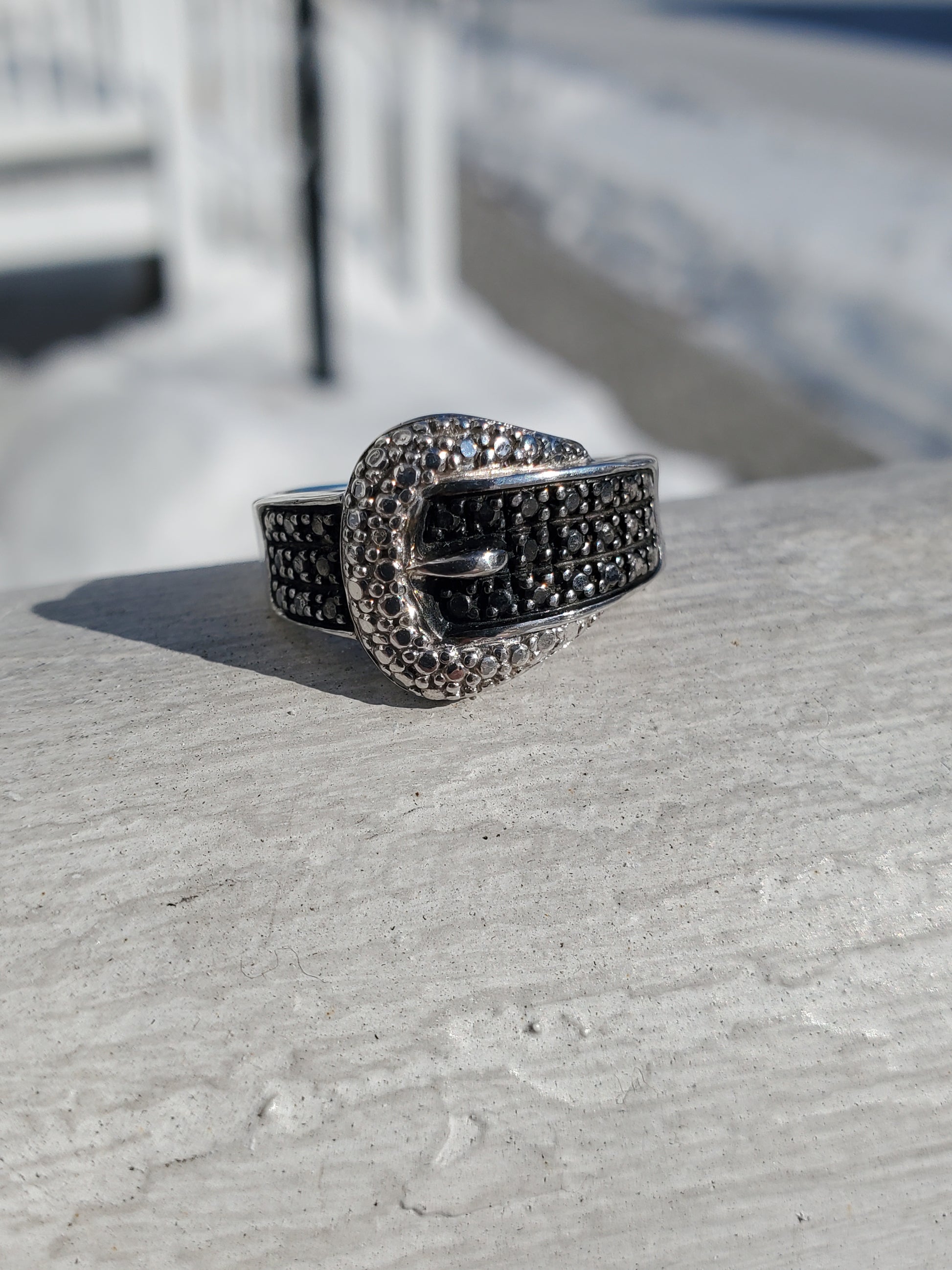 925 Sterling Silver Two-tone Black & Clear Zirconia CZ Belt Buckle Ring