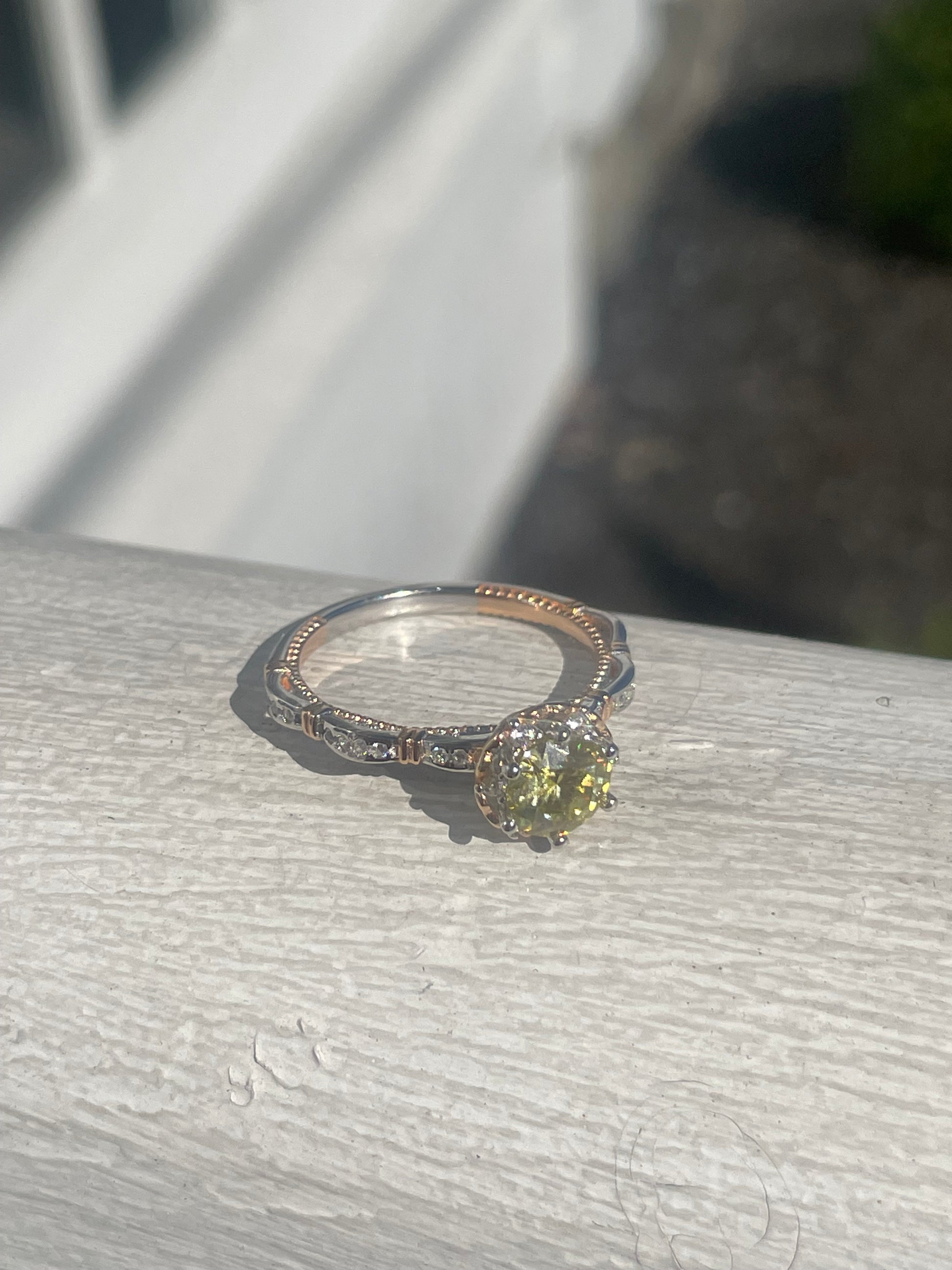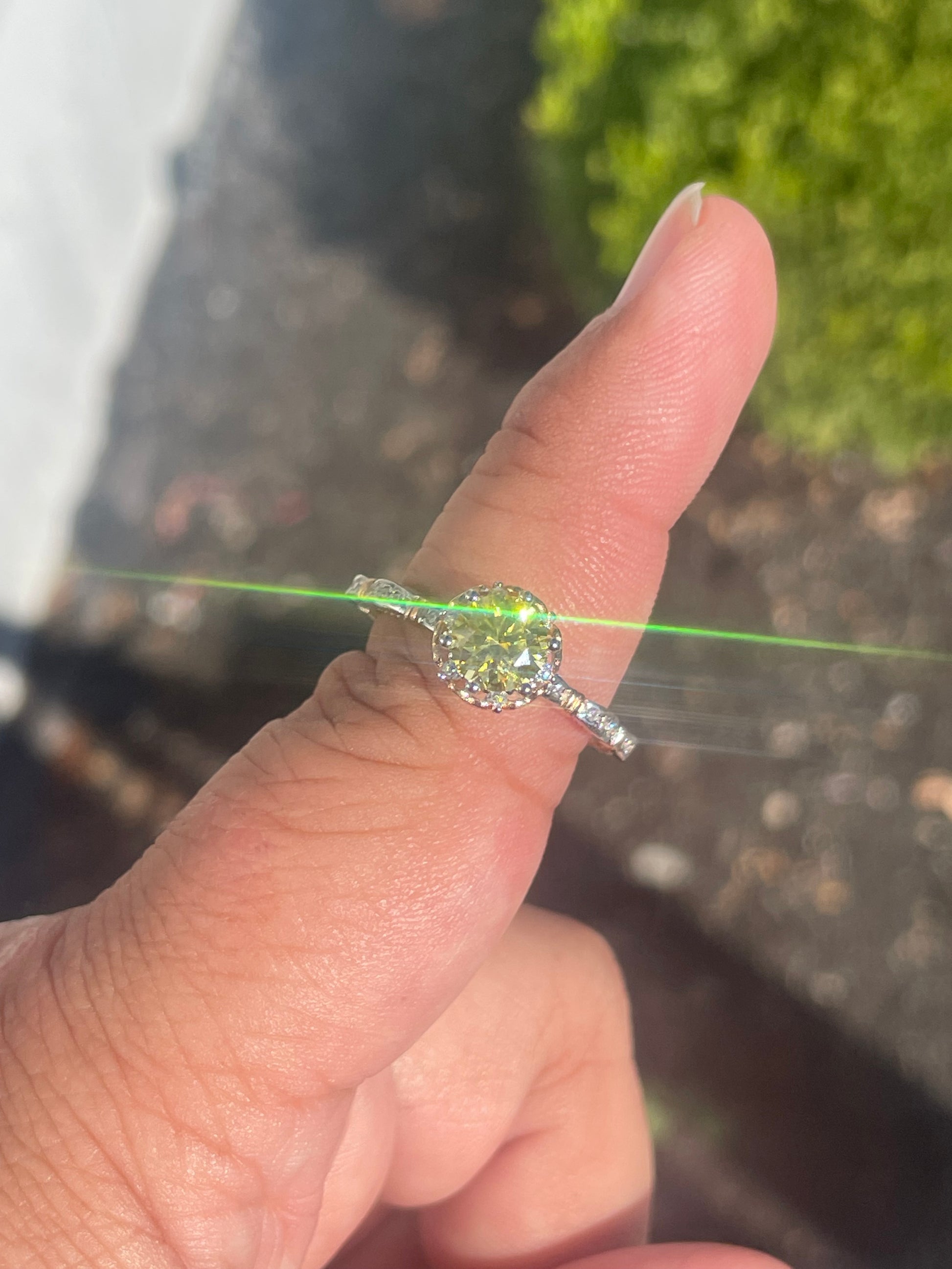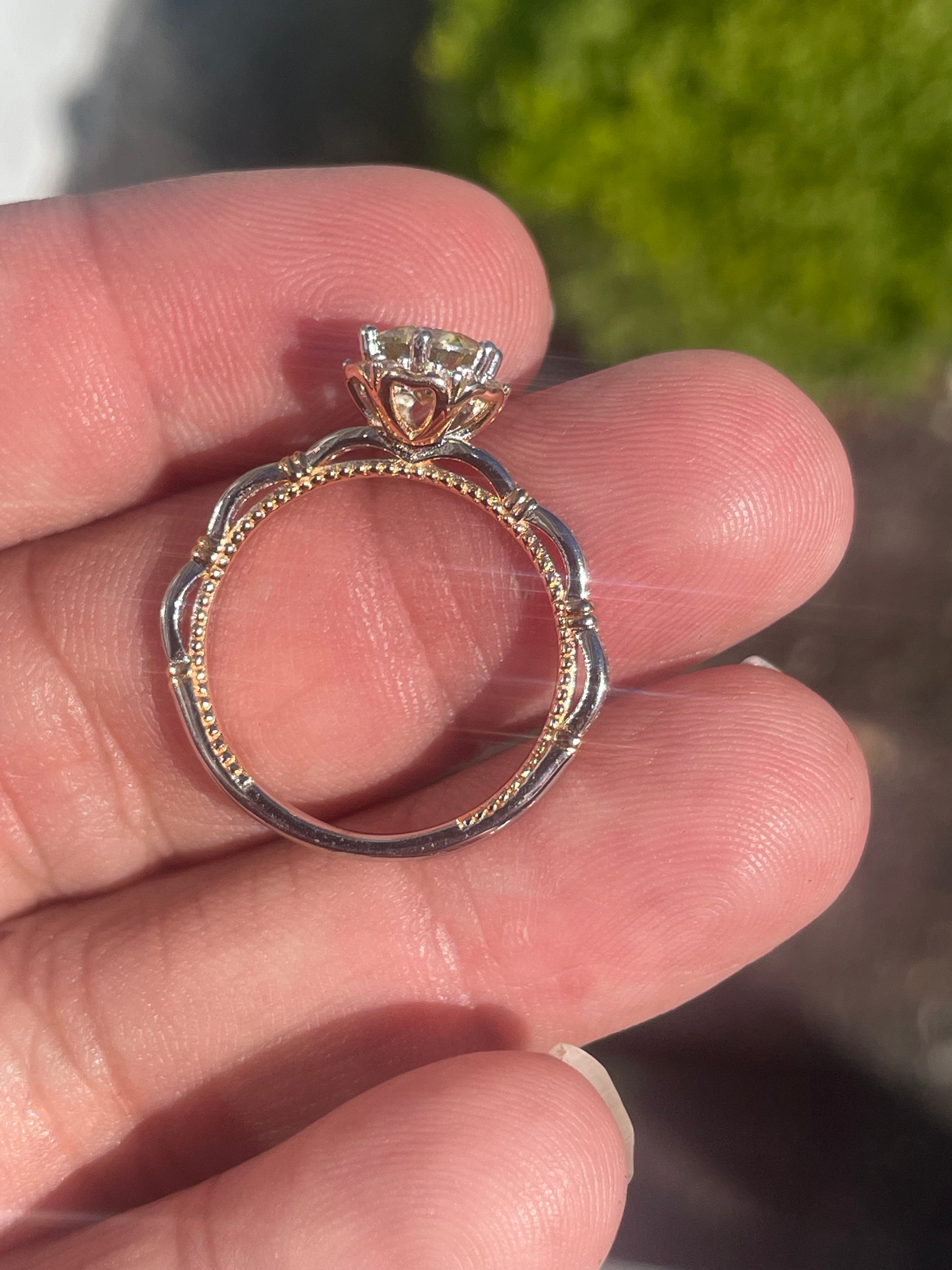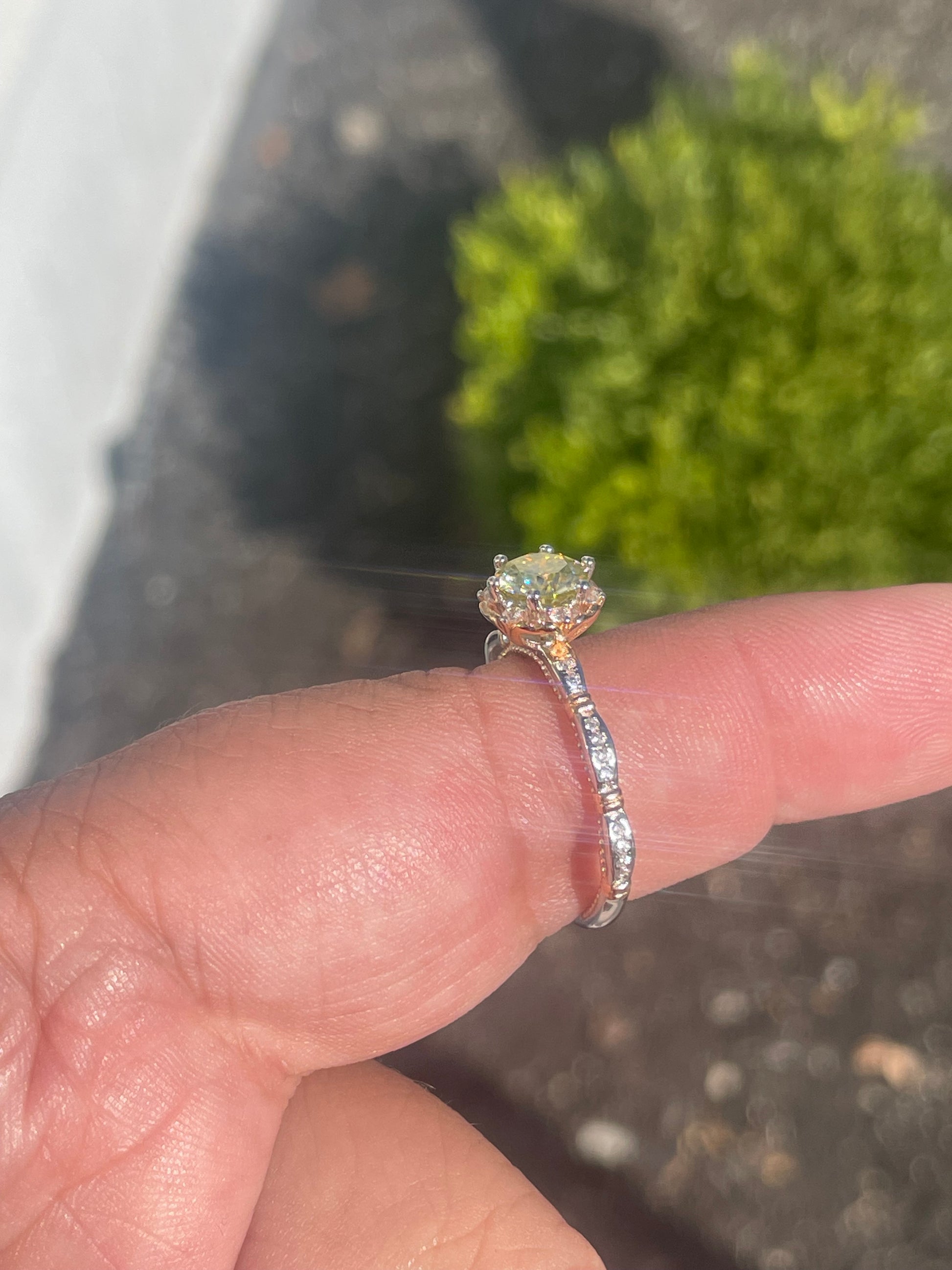 925 Sterling Silver & Vermeil 2tone 1.00ct Canary Yellow Moisonite Solitaire Ring Size 8.5
