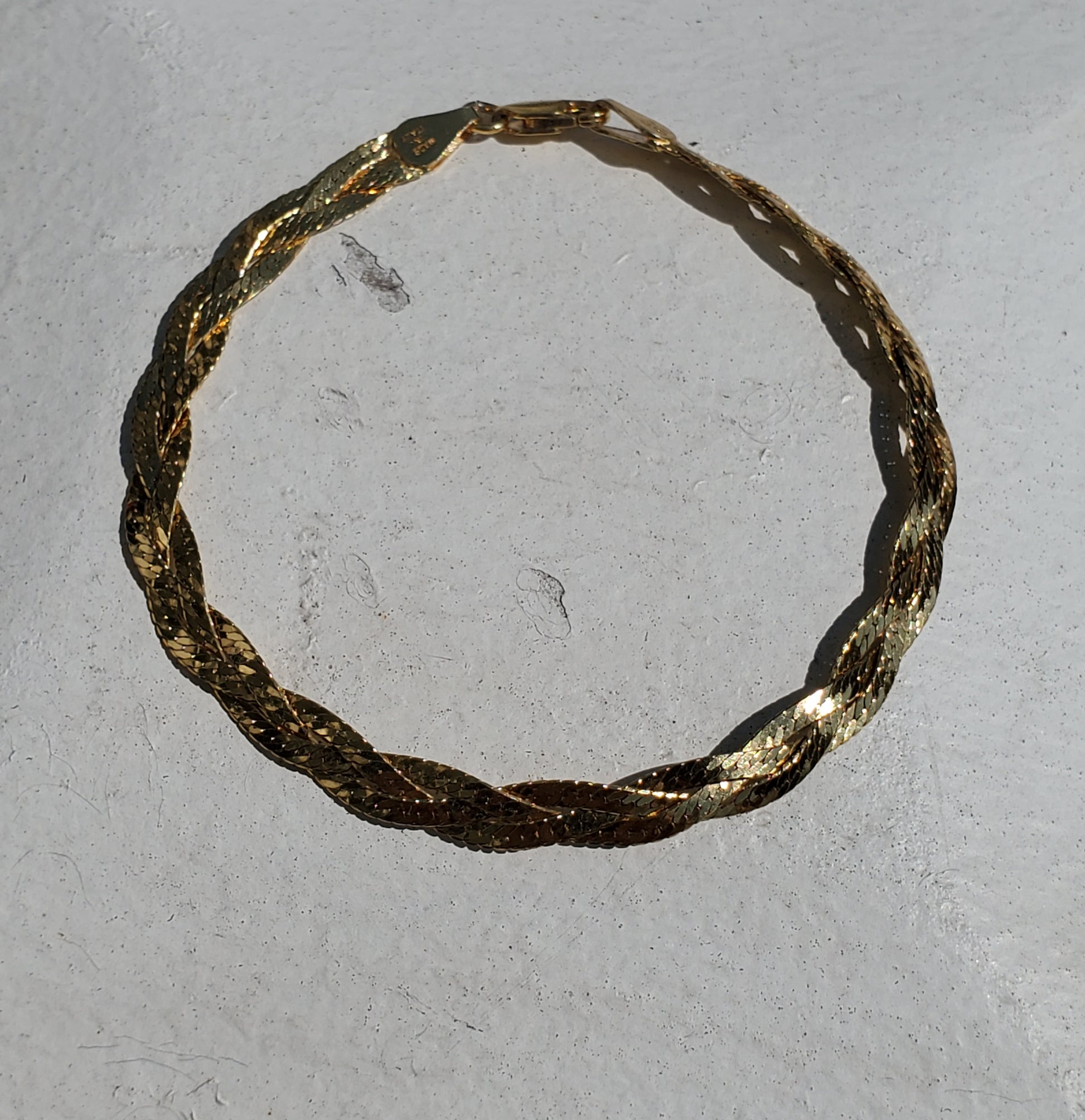 Crafted from 925 sterling silver, this vermeil braided bracelet features a shiney herringbone design that exudes elegance. With a total length of 7.5", this high-quality piece adds a touch of sophistication to any outfit. The perfect accessory for the modern woman who appreciates timeless style.