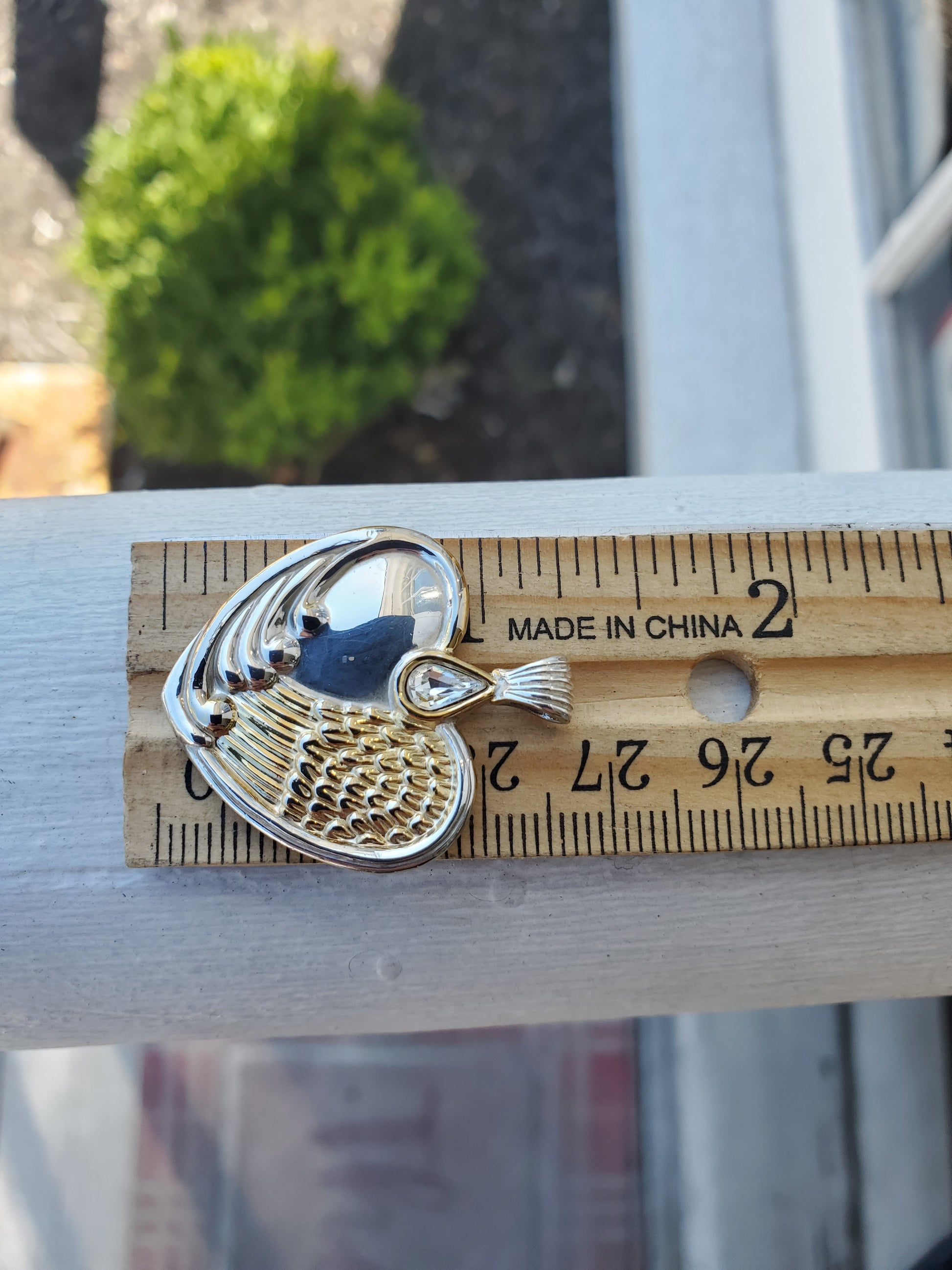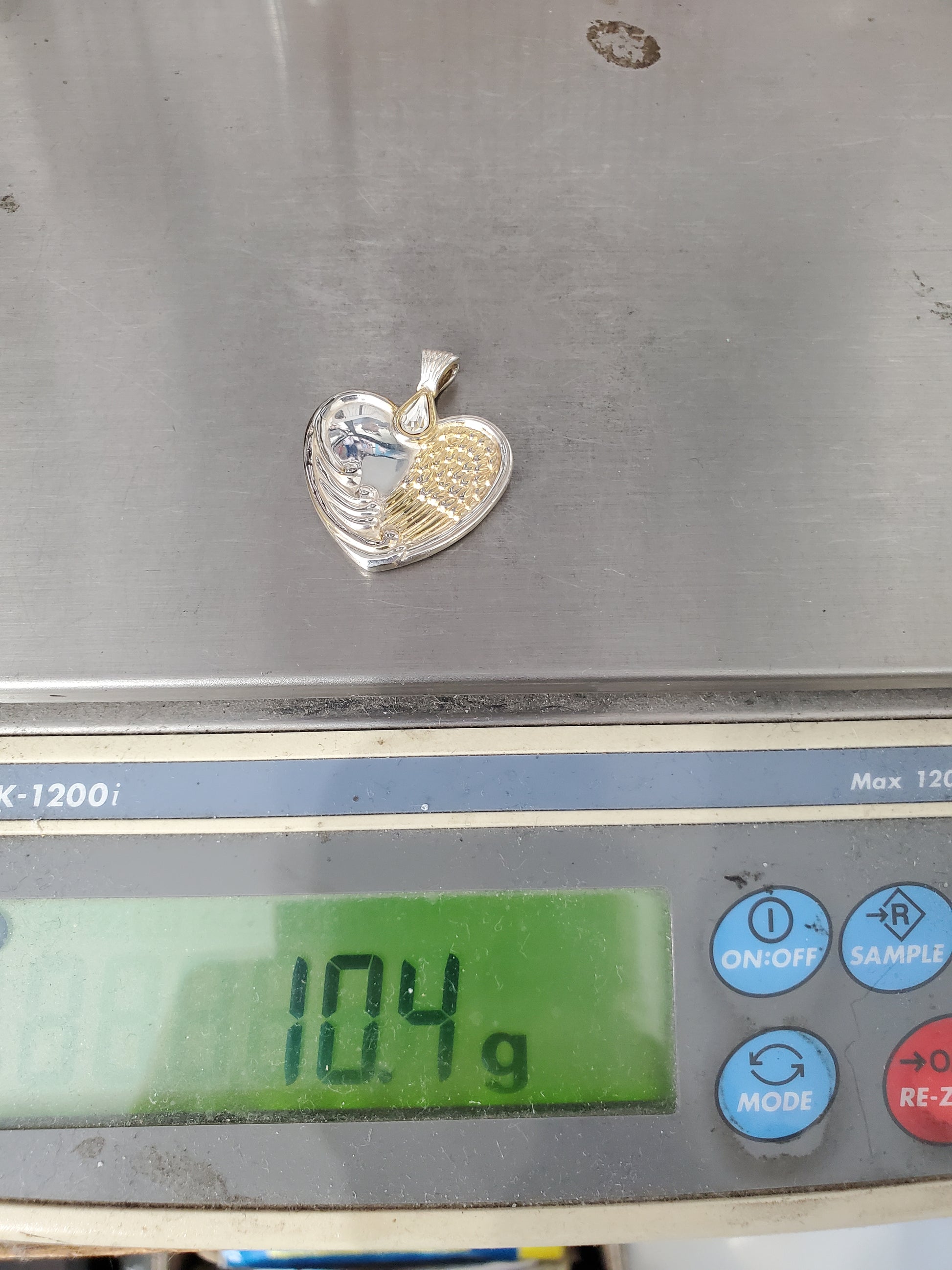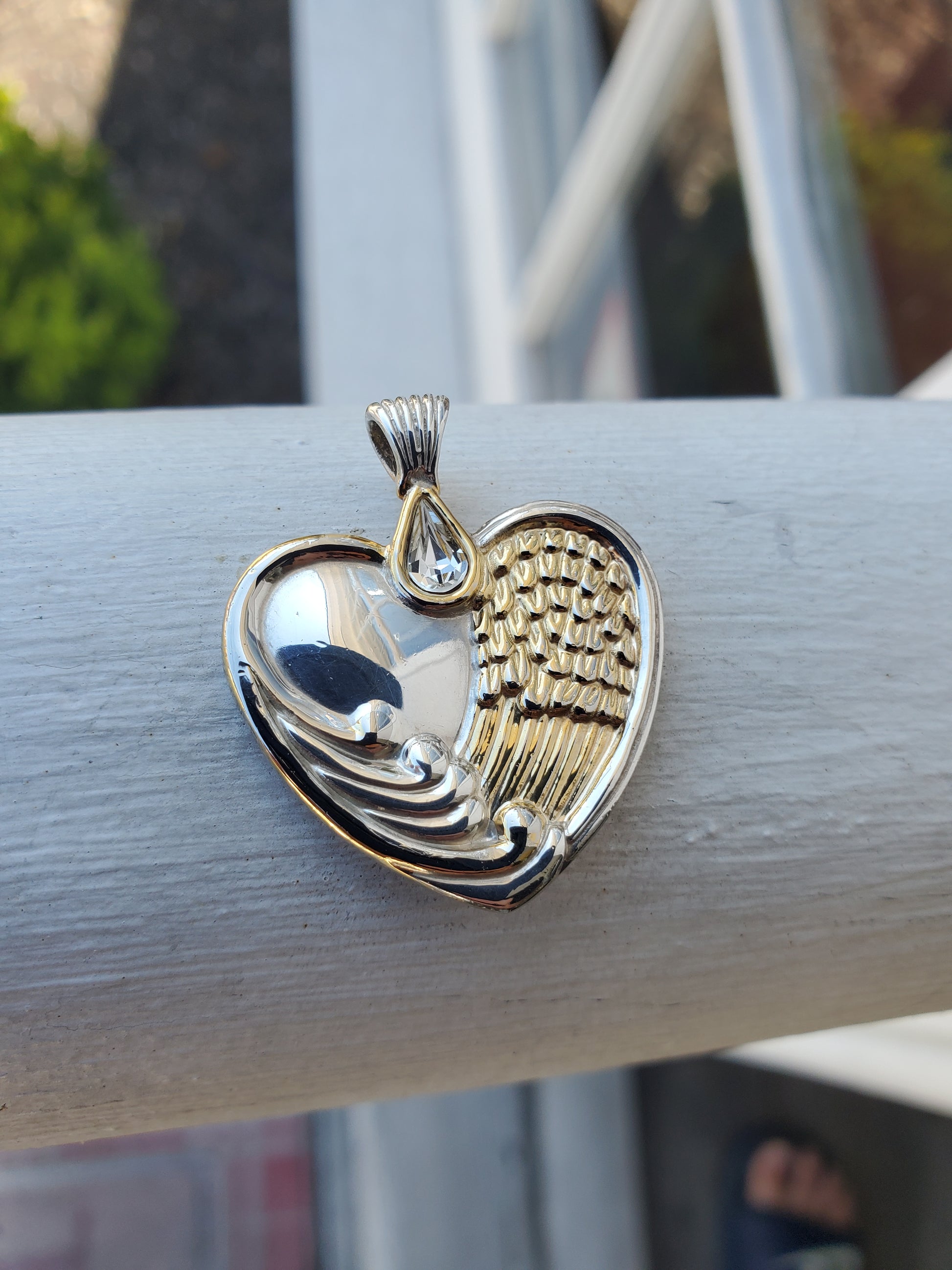 925 Sterling Silver & Vermeil Designer Bradford Exchange Angelic Angel Wing Crystal Heart Pendant