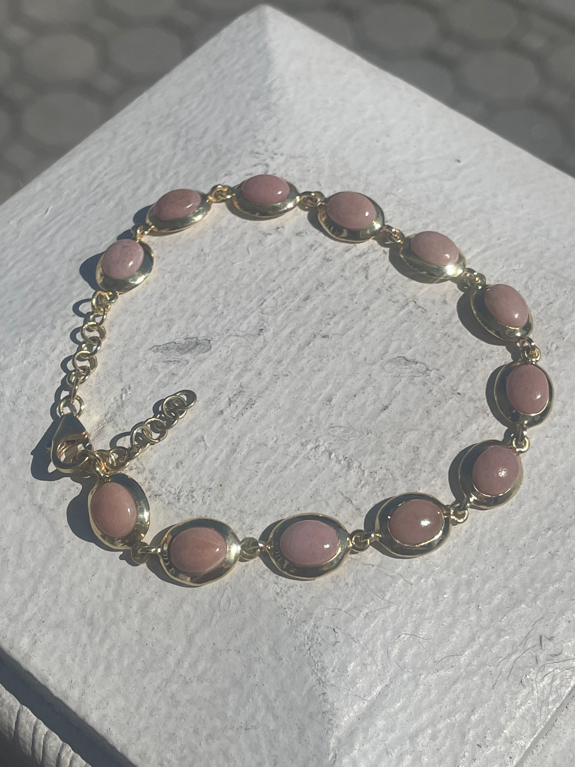 925 Sterling Silver Vermeil Natural Rhodonite Stone Bracelet