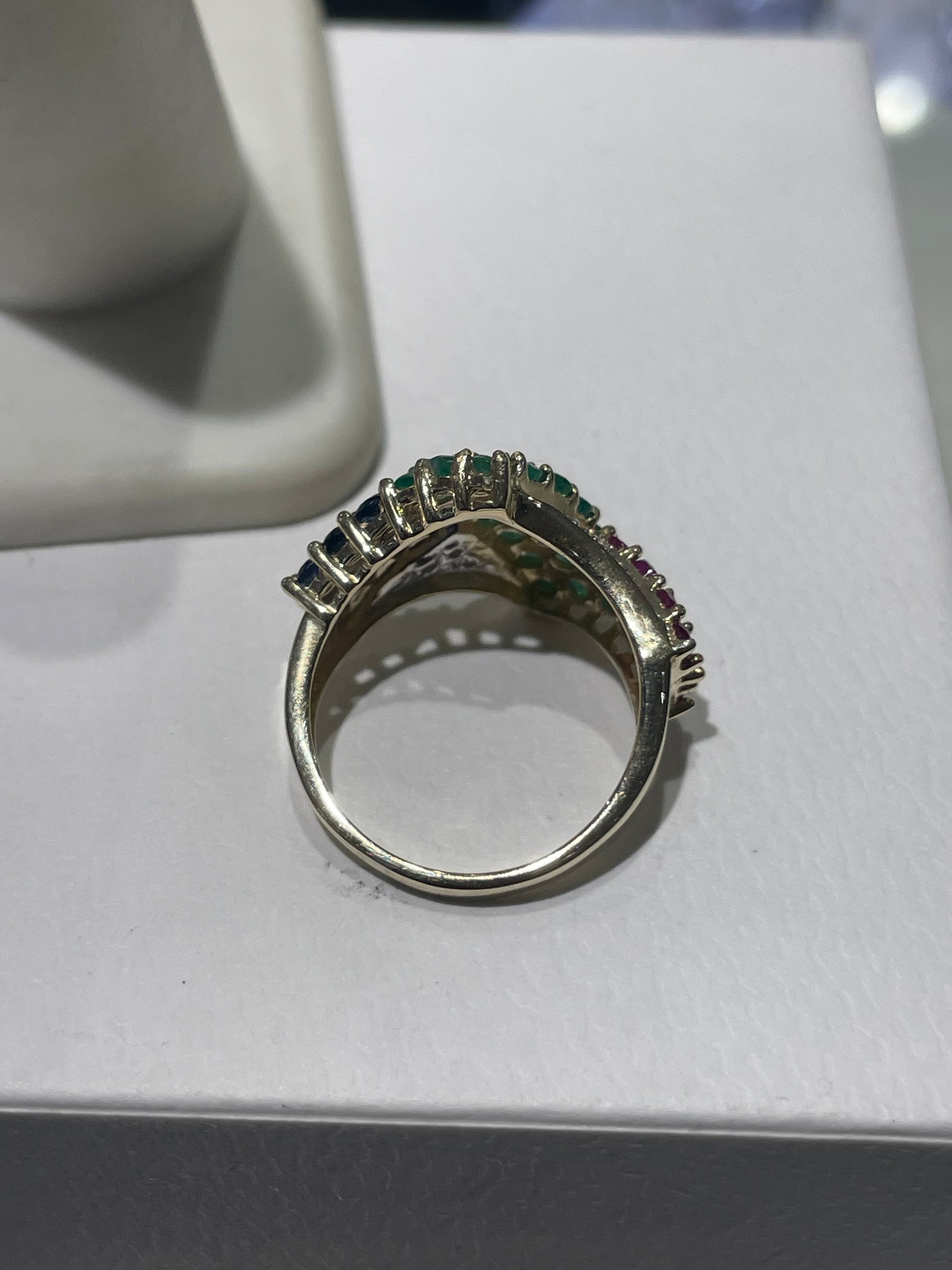 925 Sterling Silver Vermeil Natural Ruby Emerald Sapphire and Diamond Cluster Ring Size 6.5