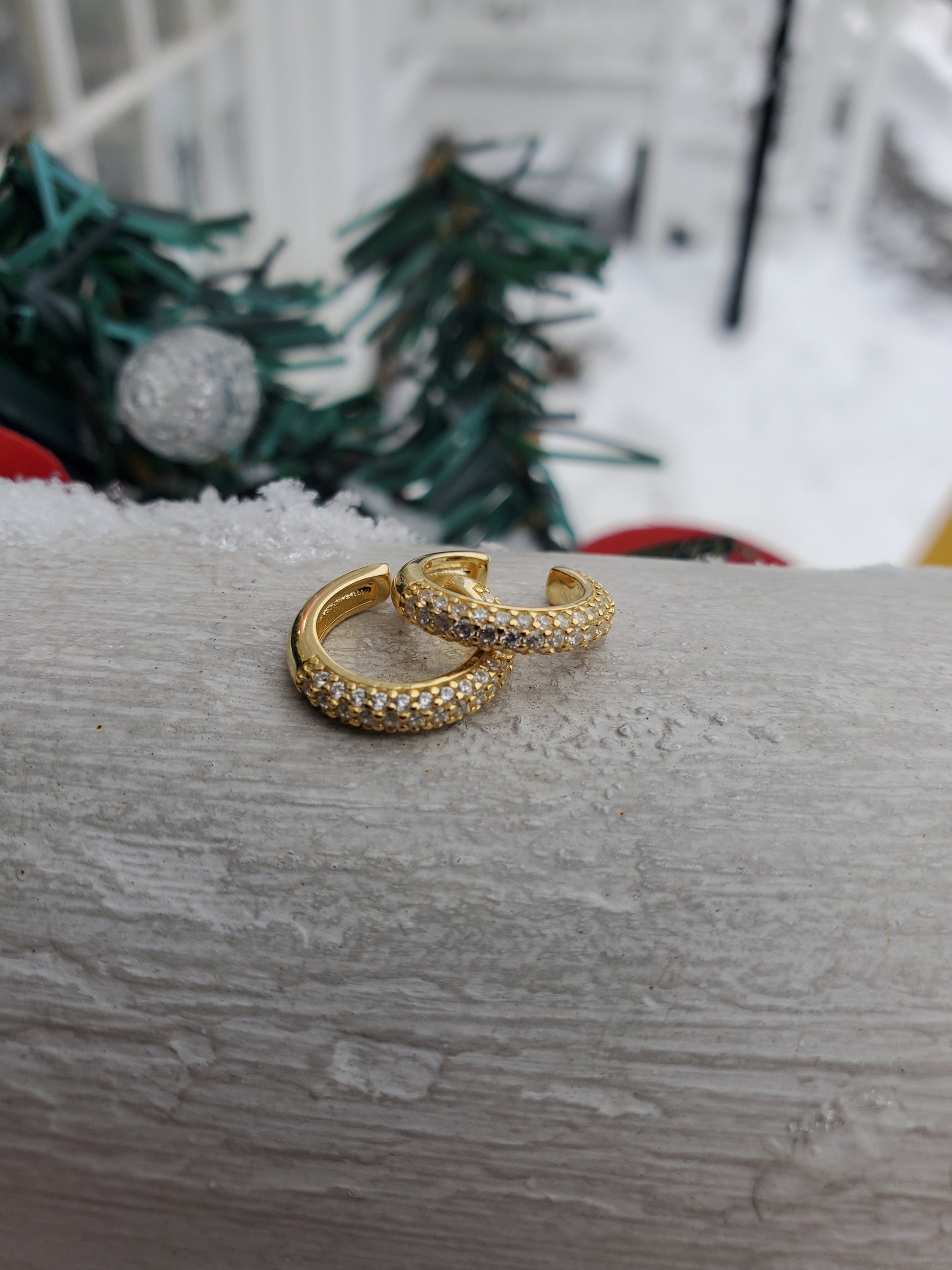 925 Sterling Silver Vermeil Pave Set Zirconia CZ Ear Cuff Earrings