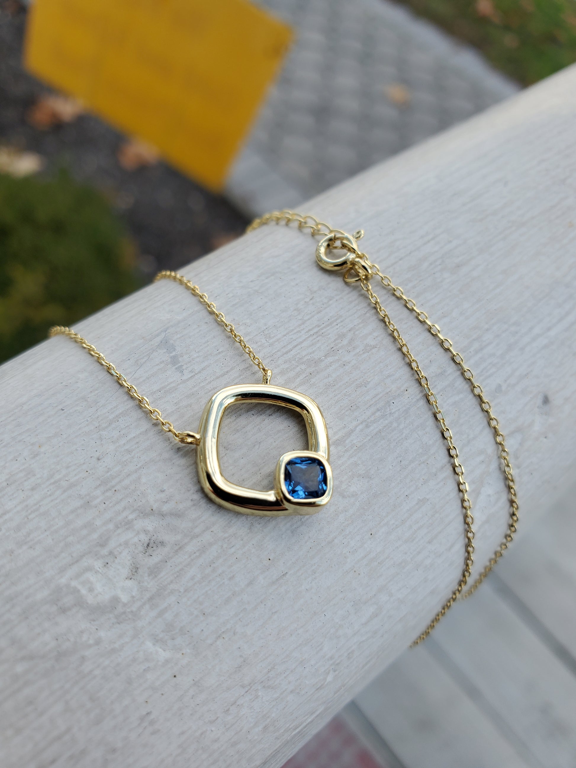 925 Sterling Silver Vermeil Petite London Blue Topaz Necklace