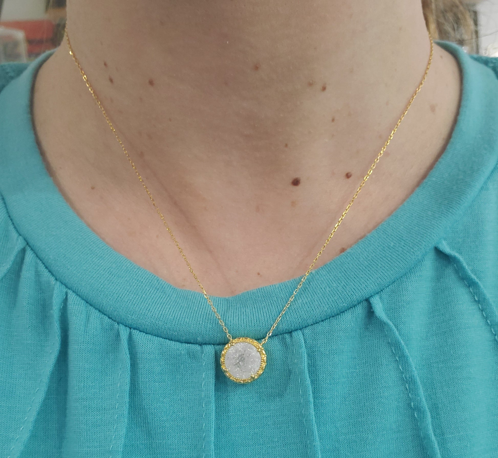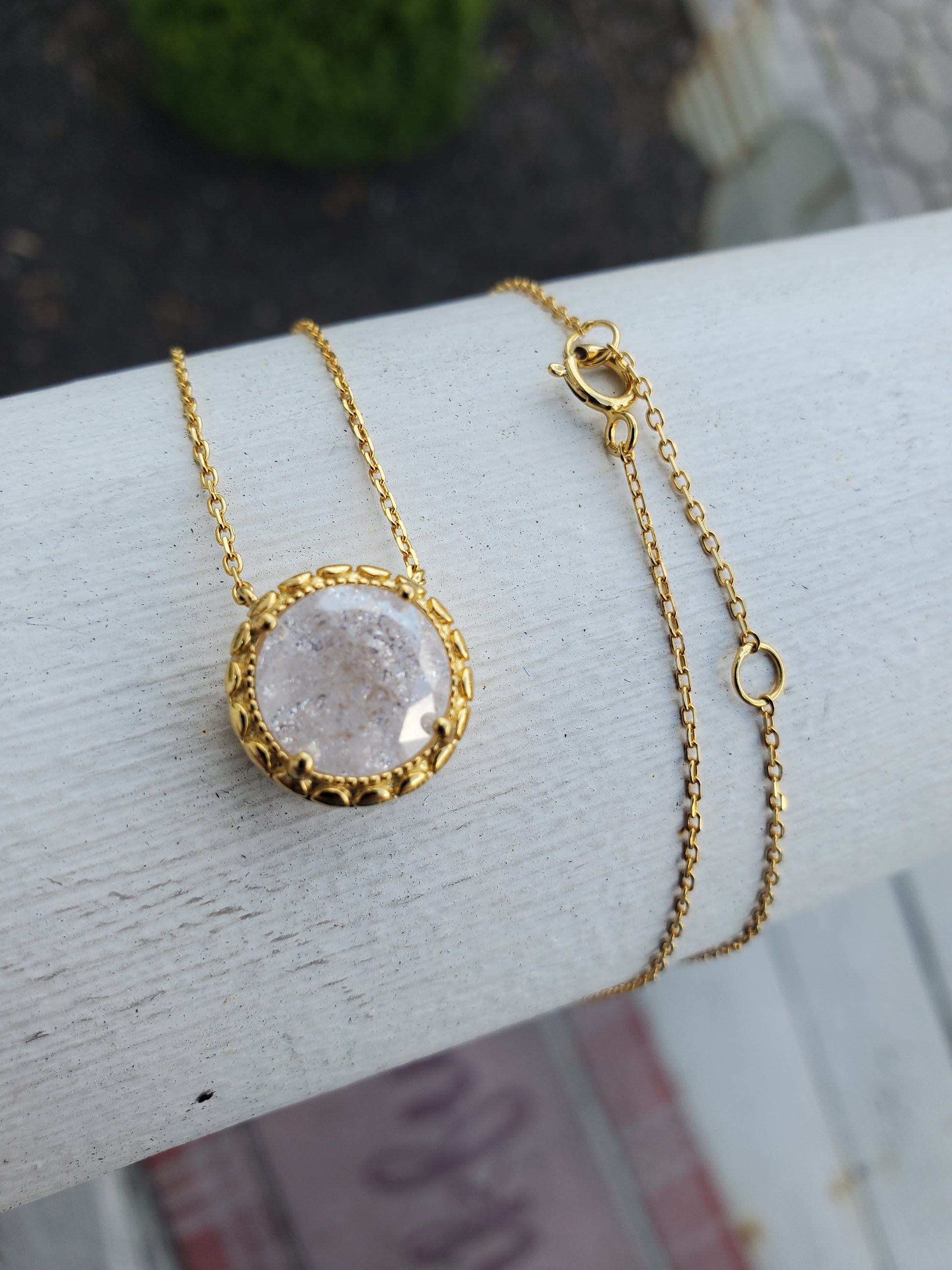925 Sterling Silver Vermeil Rock Crackle Quartz Crystal Necklace