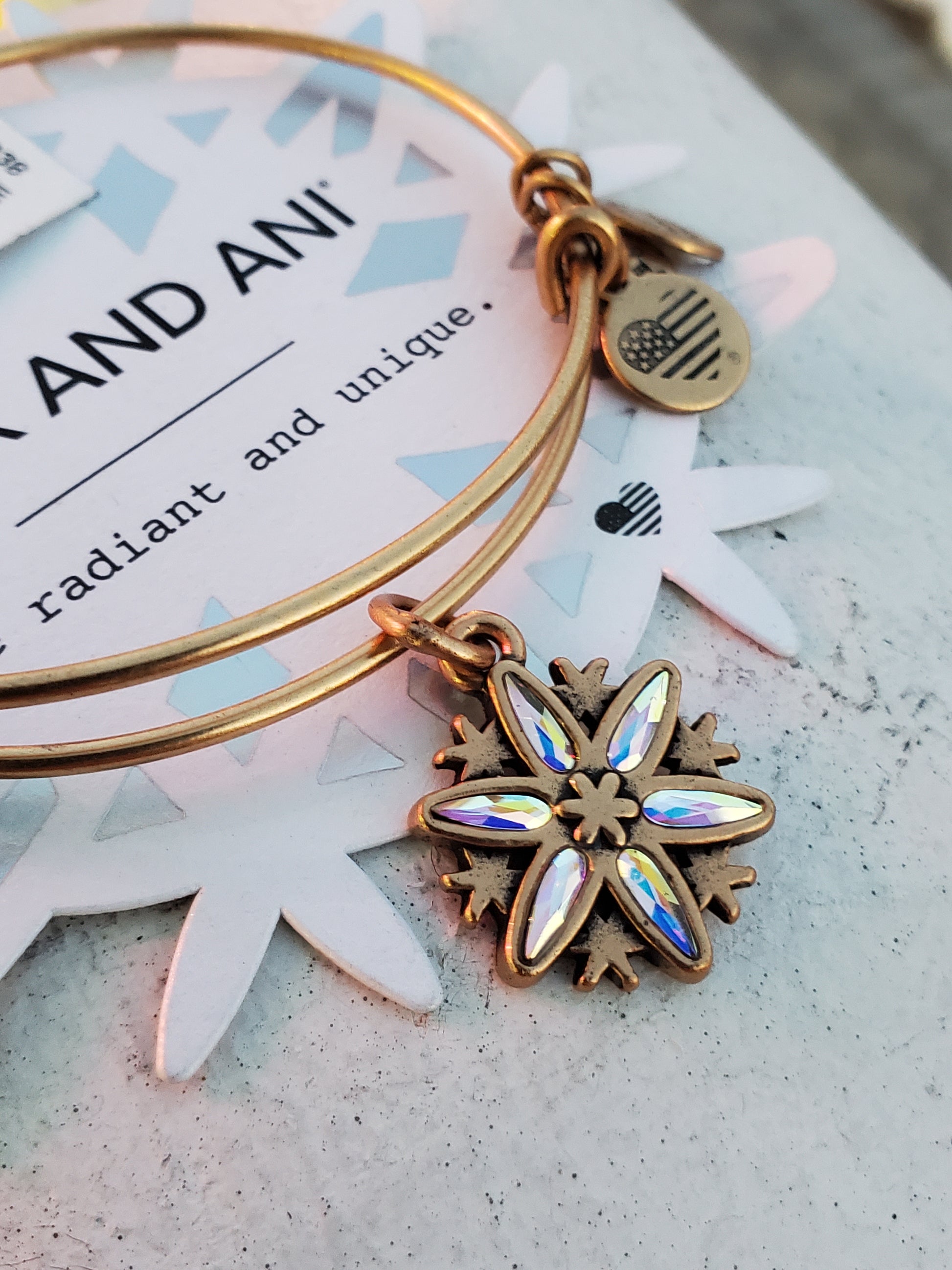 Alex and Ani Swarovski Crystal Sparkling Snowflake Goldtone Bracelet