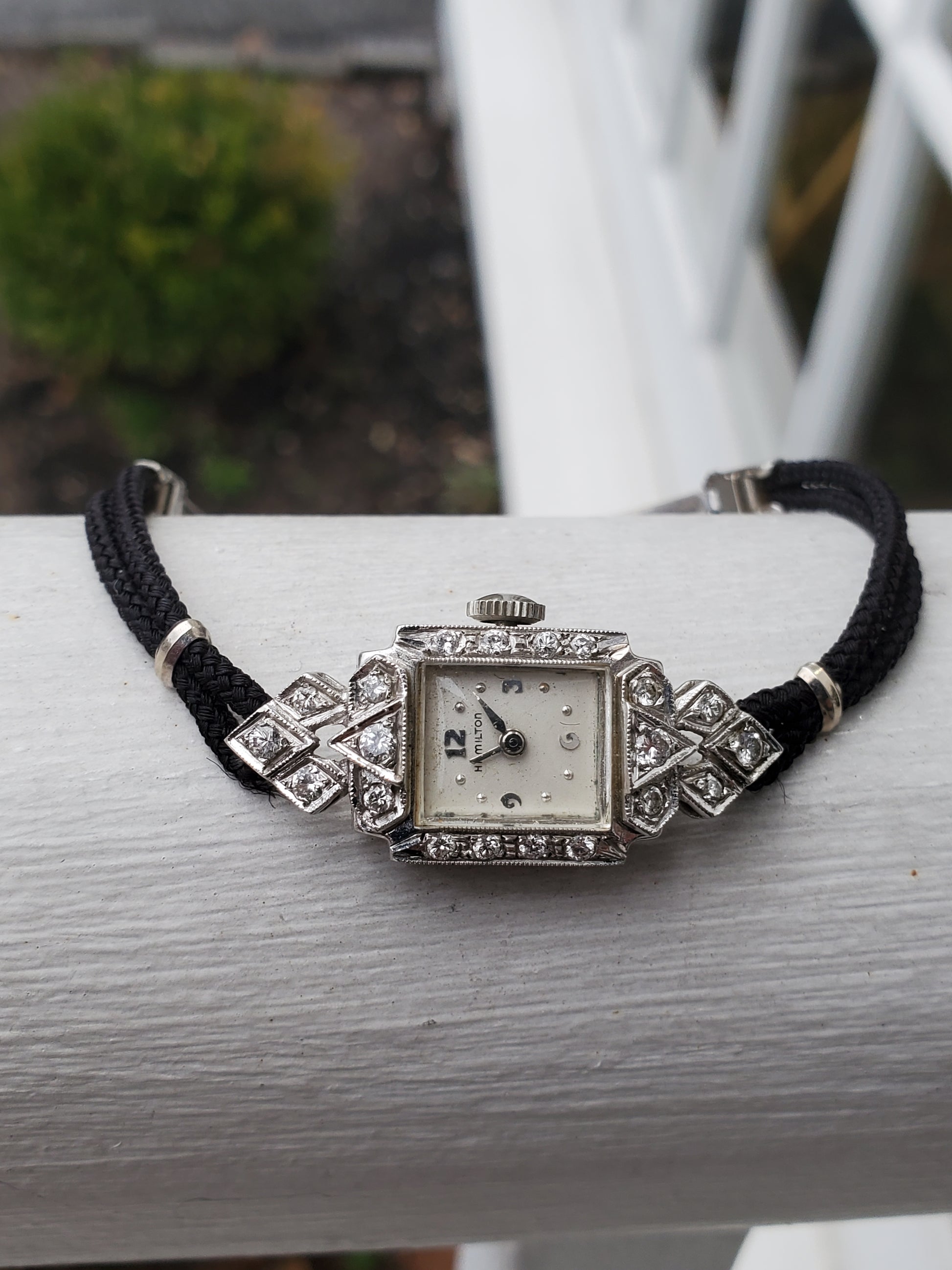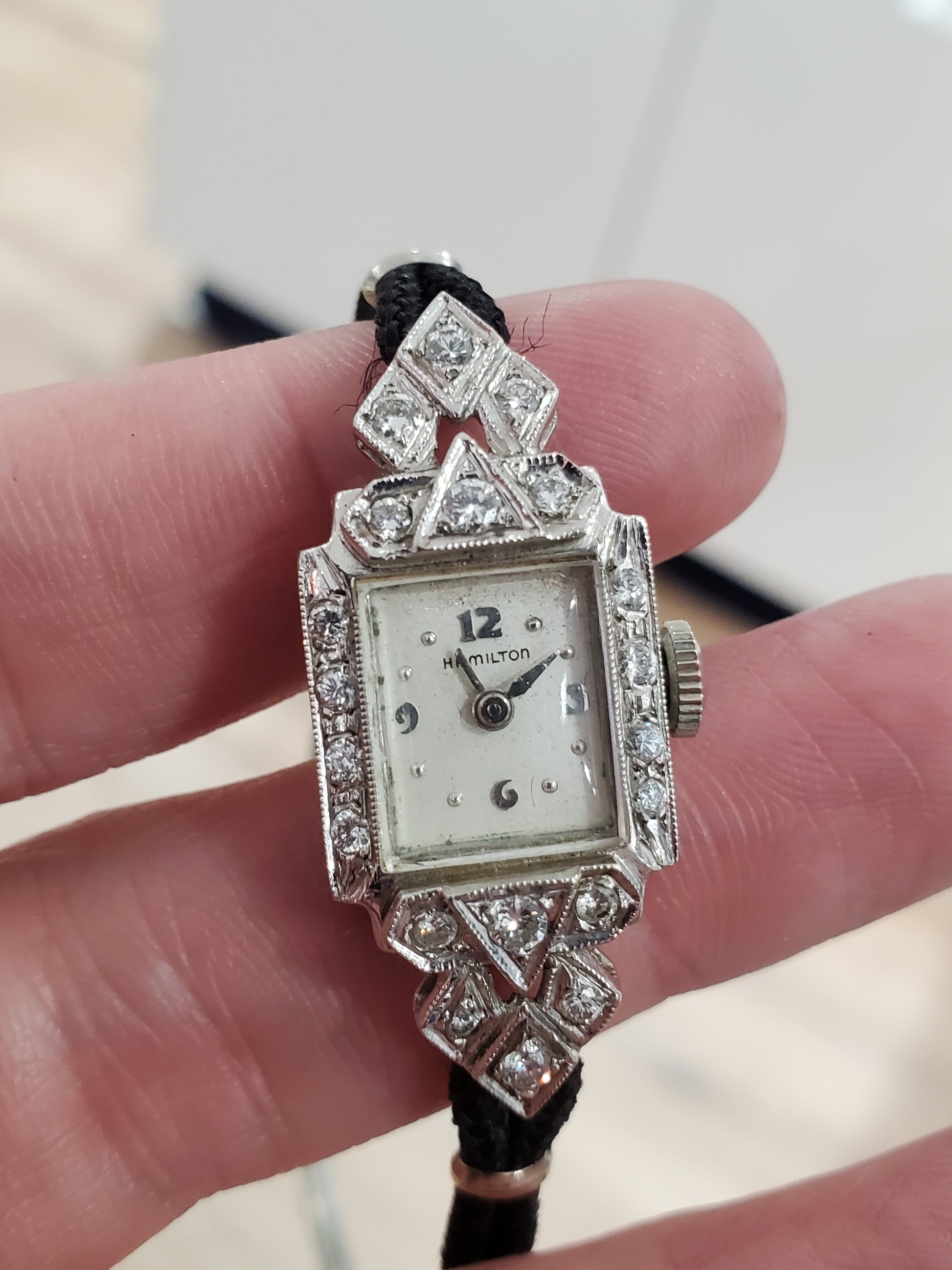 Antique Ladies Hamilton 14k White Gold & Platinum Diamond Watch