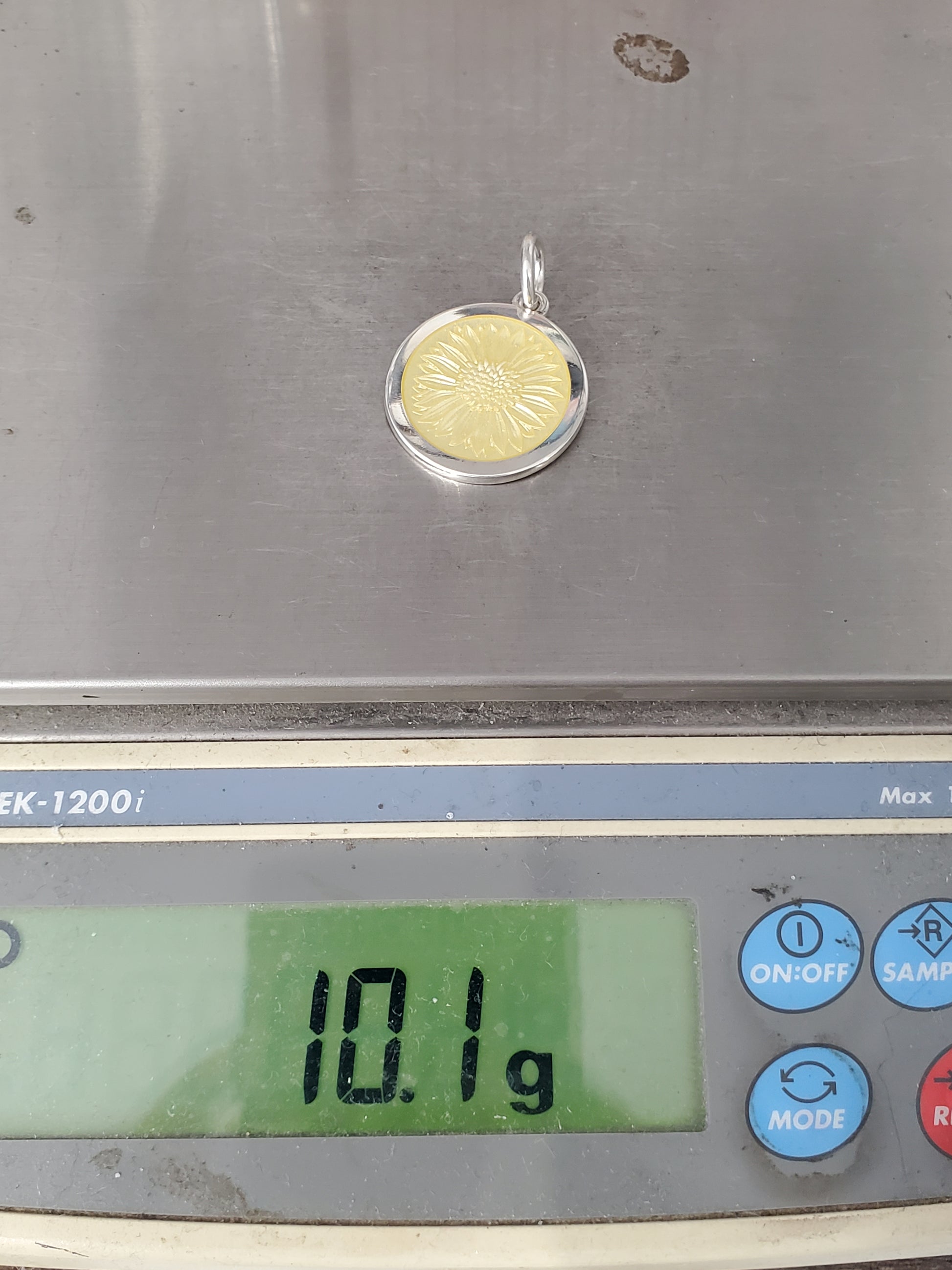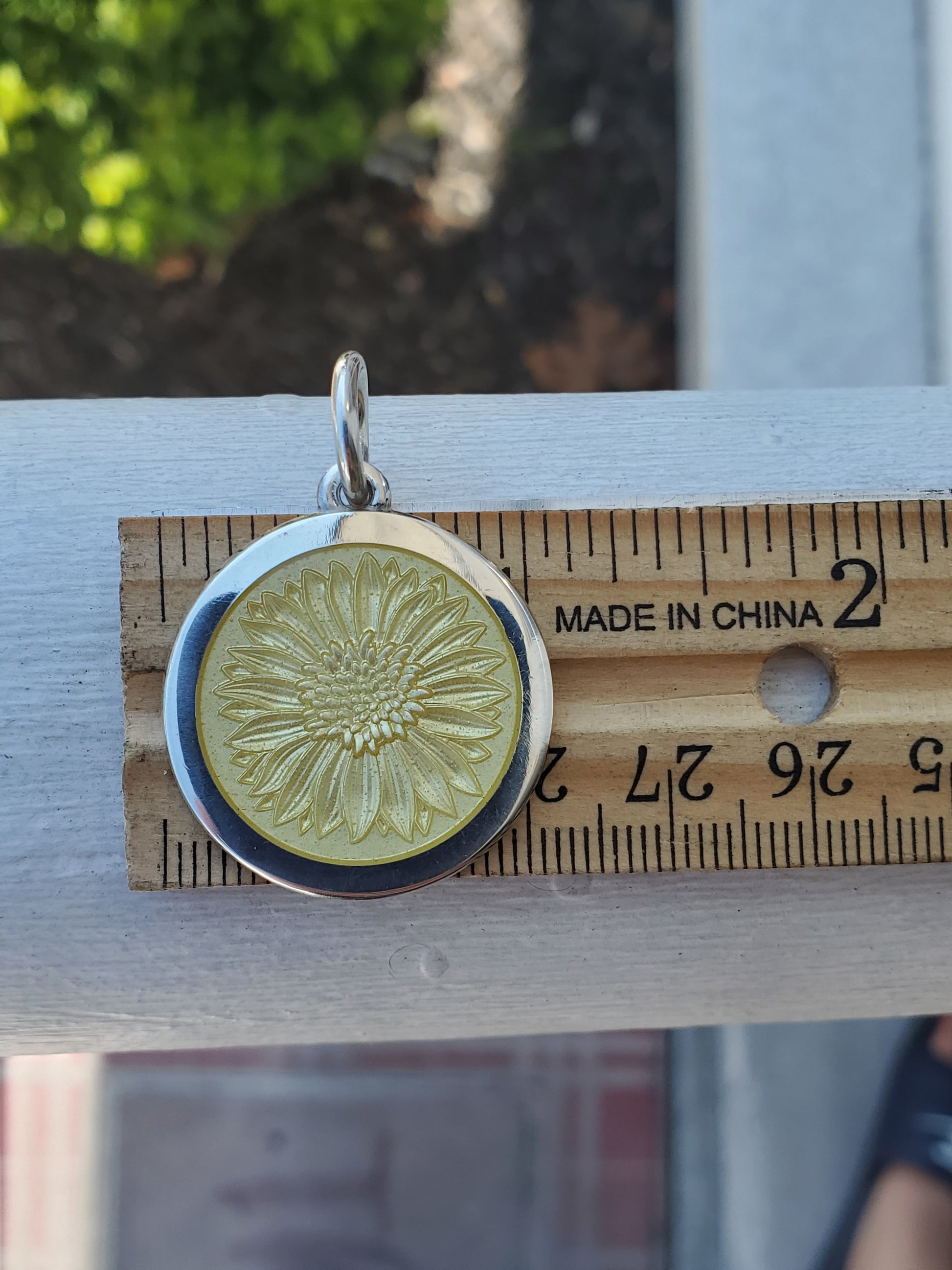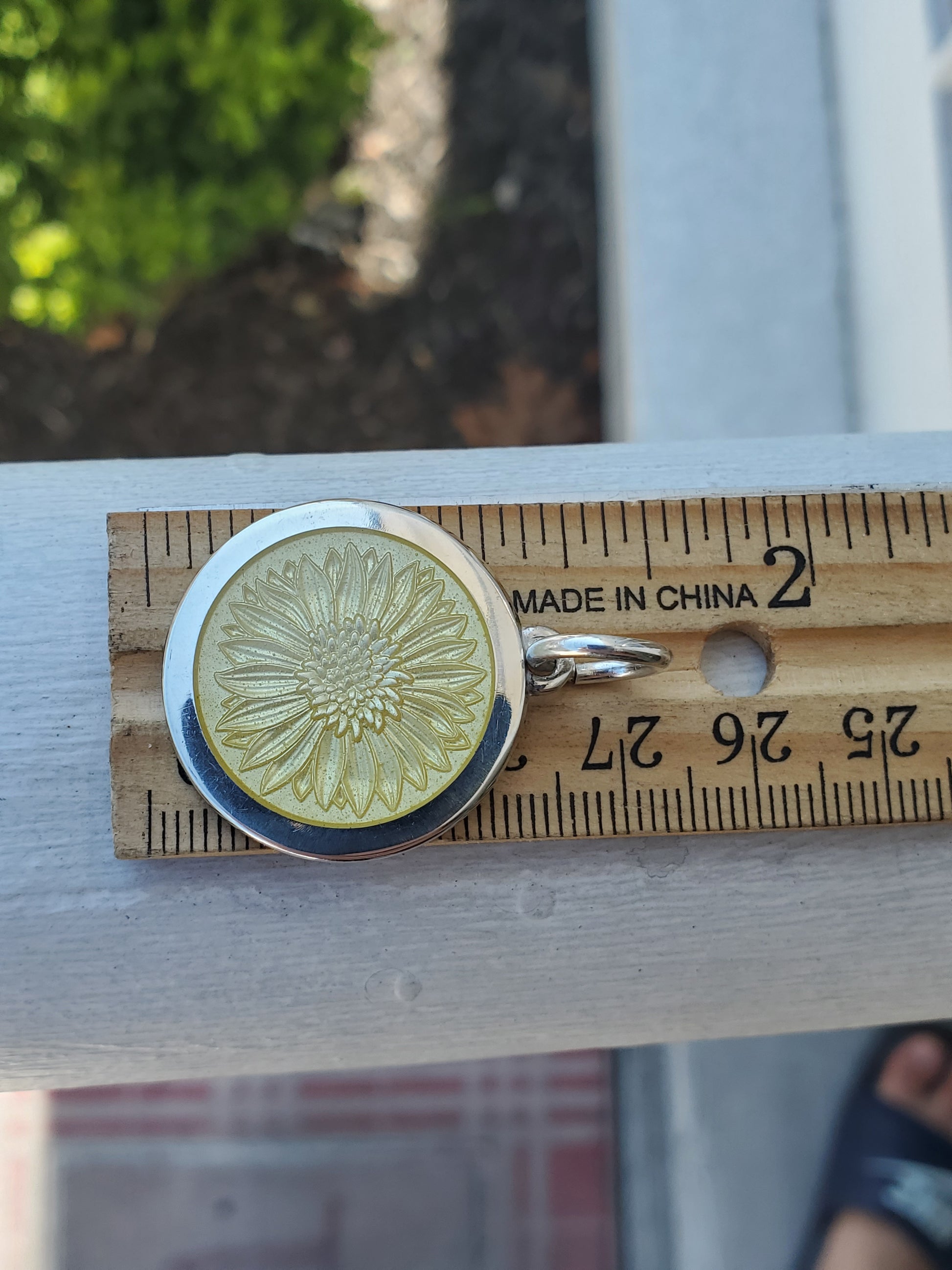 Medium sterling silver and glass enamel Colby Davis of Boston Sunflower pendant