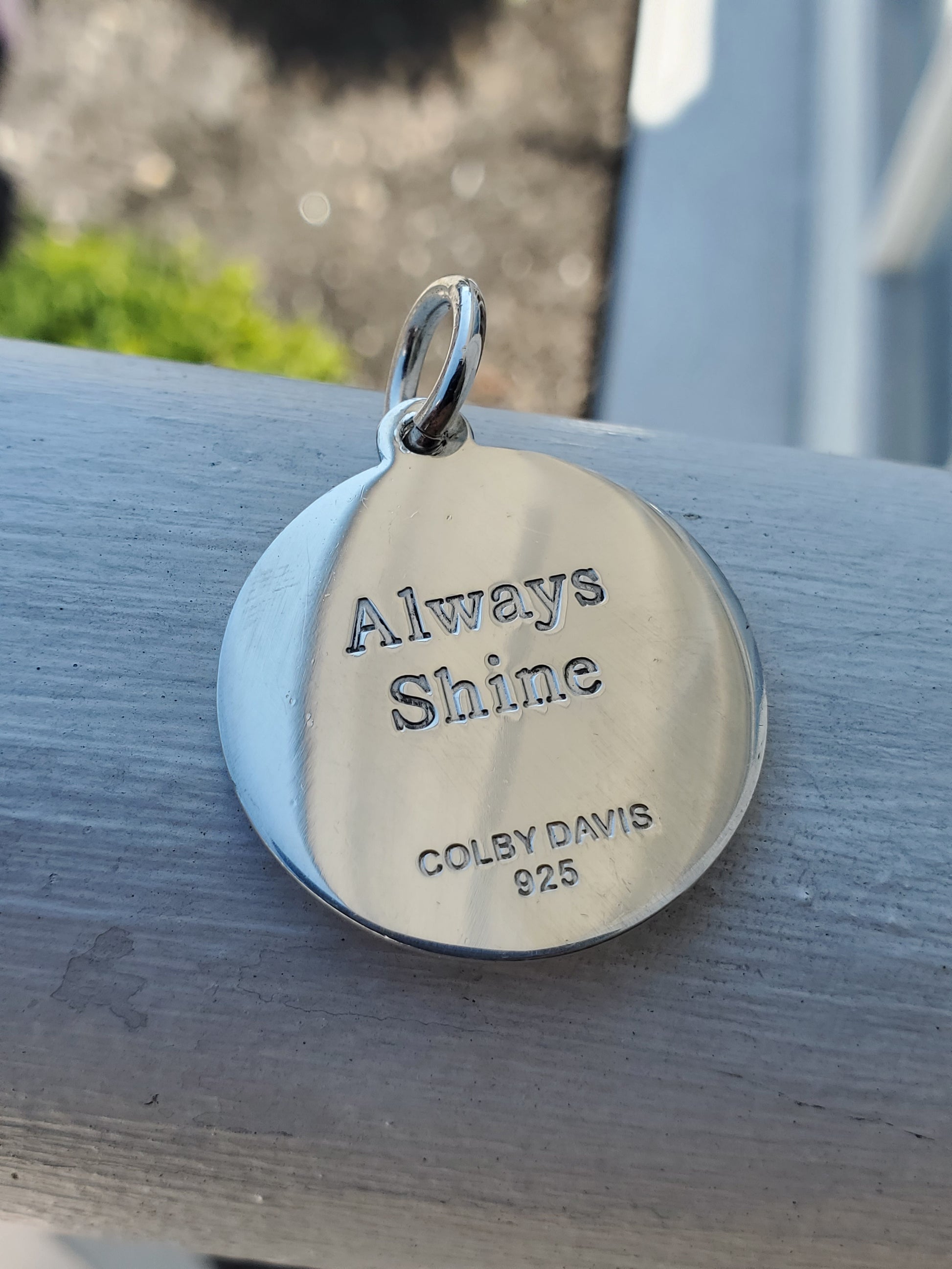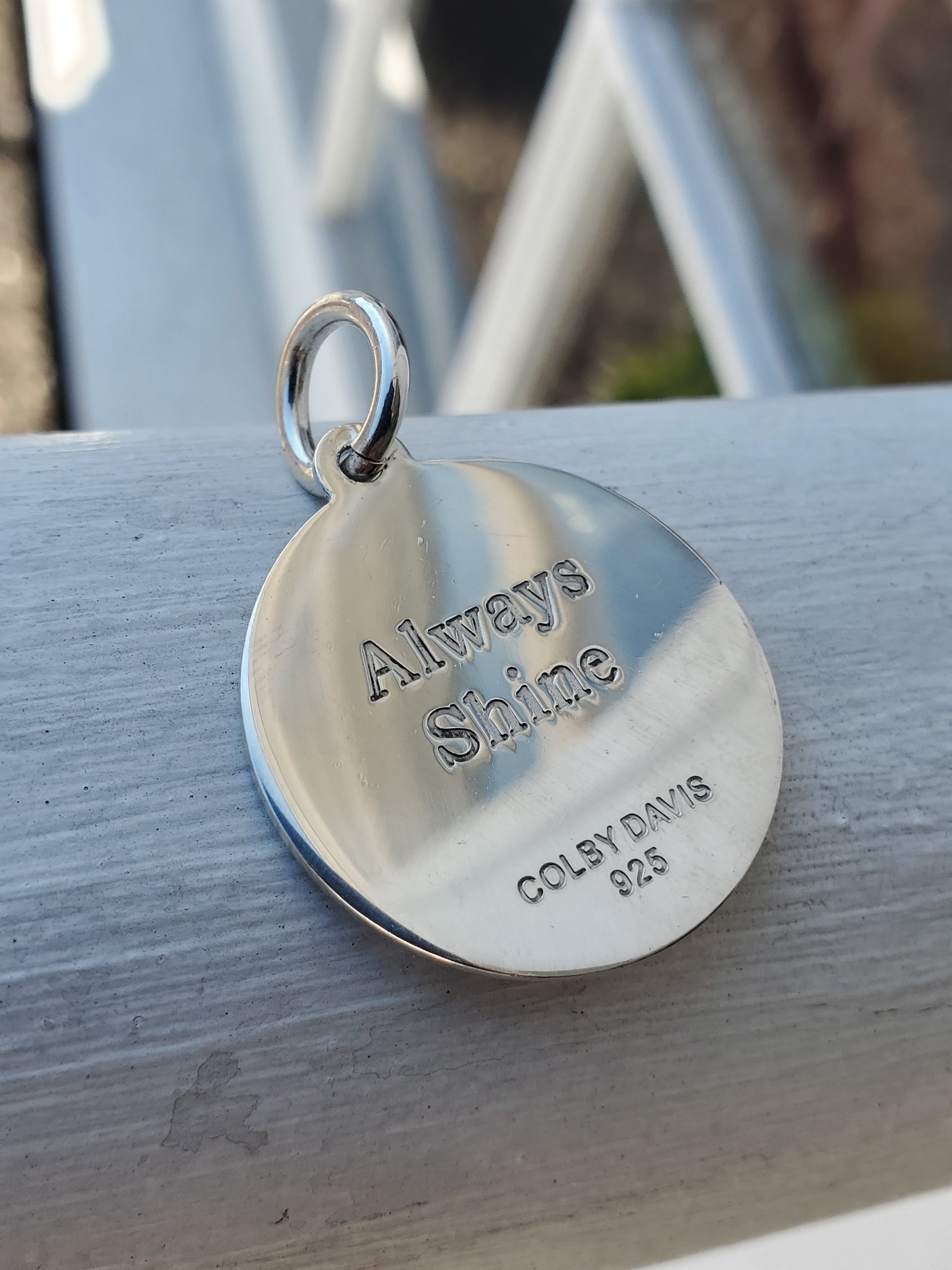 925 Sterling Silver COLBY DAVIS Sunflower Yellow Glass Enamel Pendant Always Shine