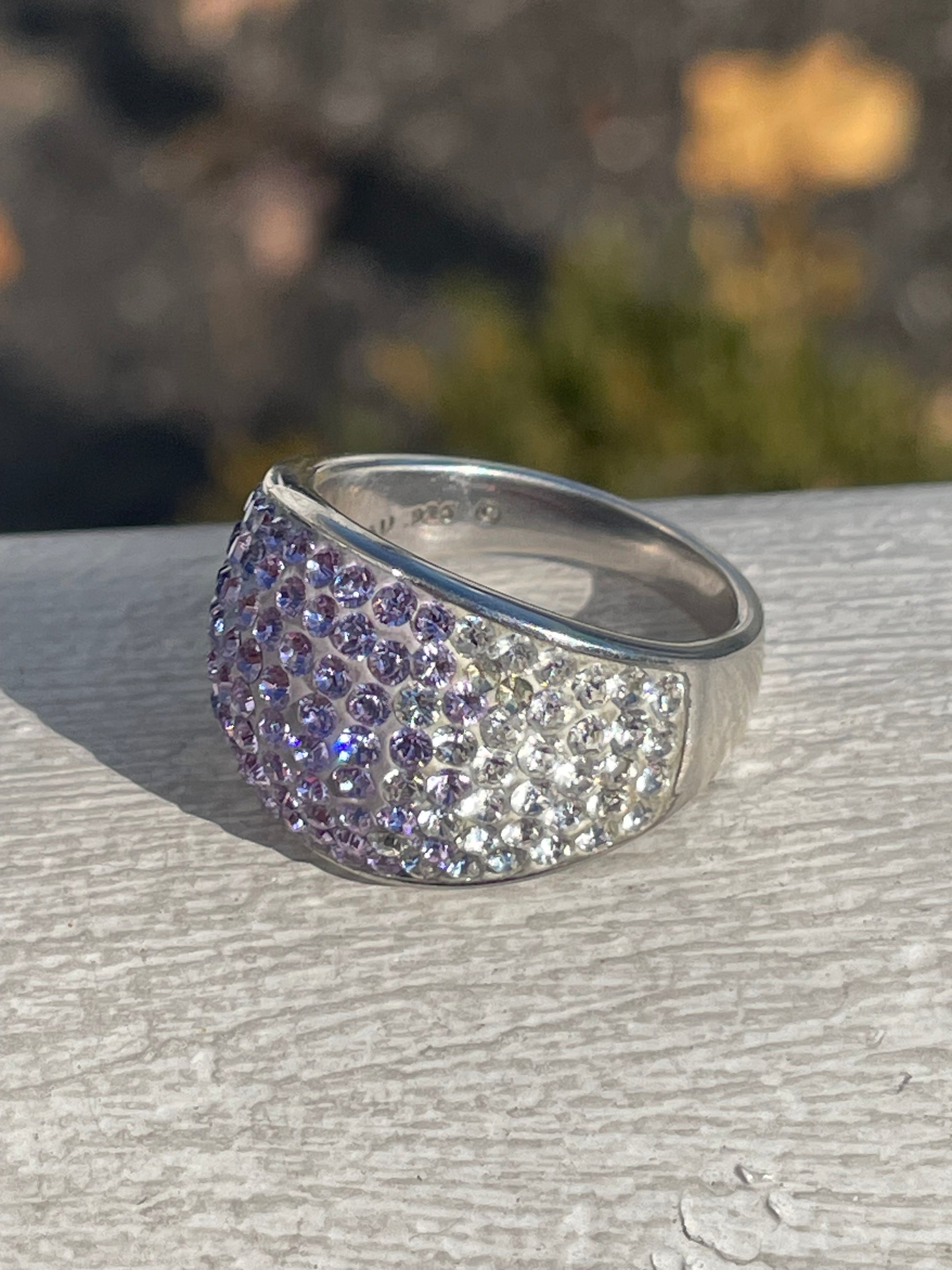 Designer AU 925 Sterling Silver Ombré Purple Crystal Dome Ring Size 8. 8.8 grams
