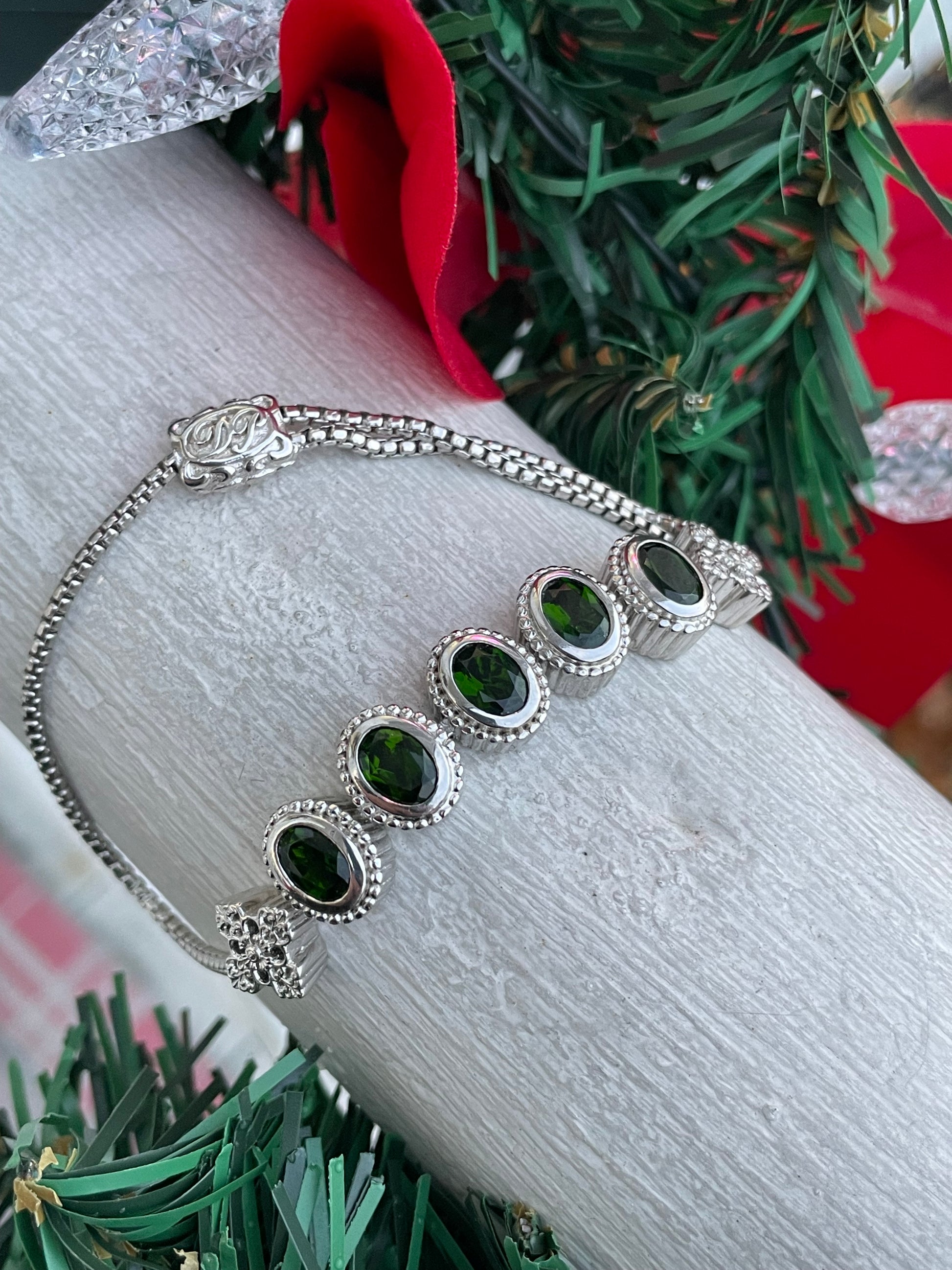Designer Doug Paulson DP 925 Sterling Silver Chrome Diopside Cable Bracelet