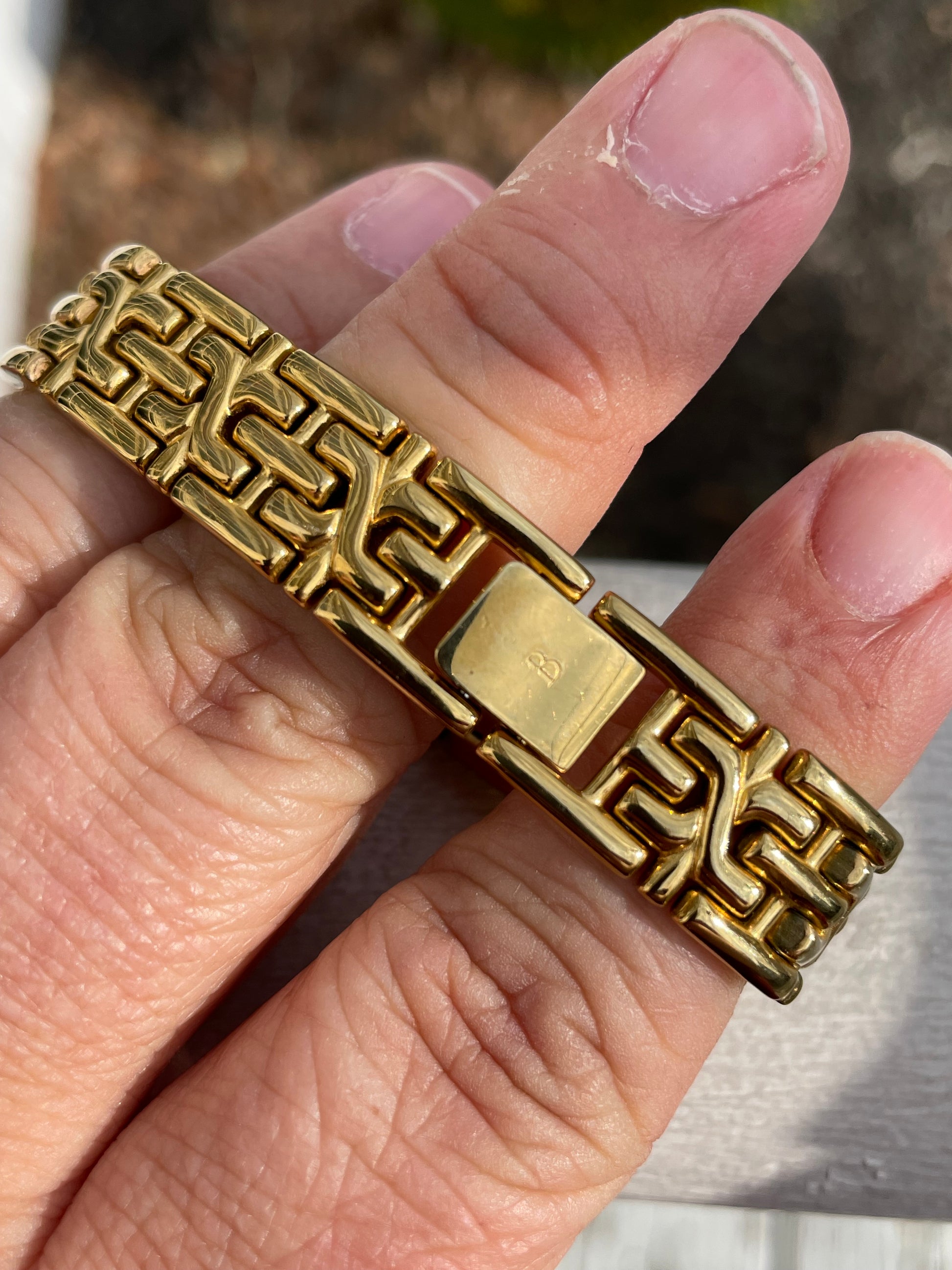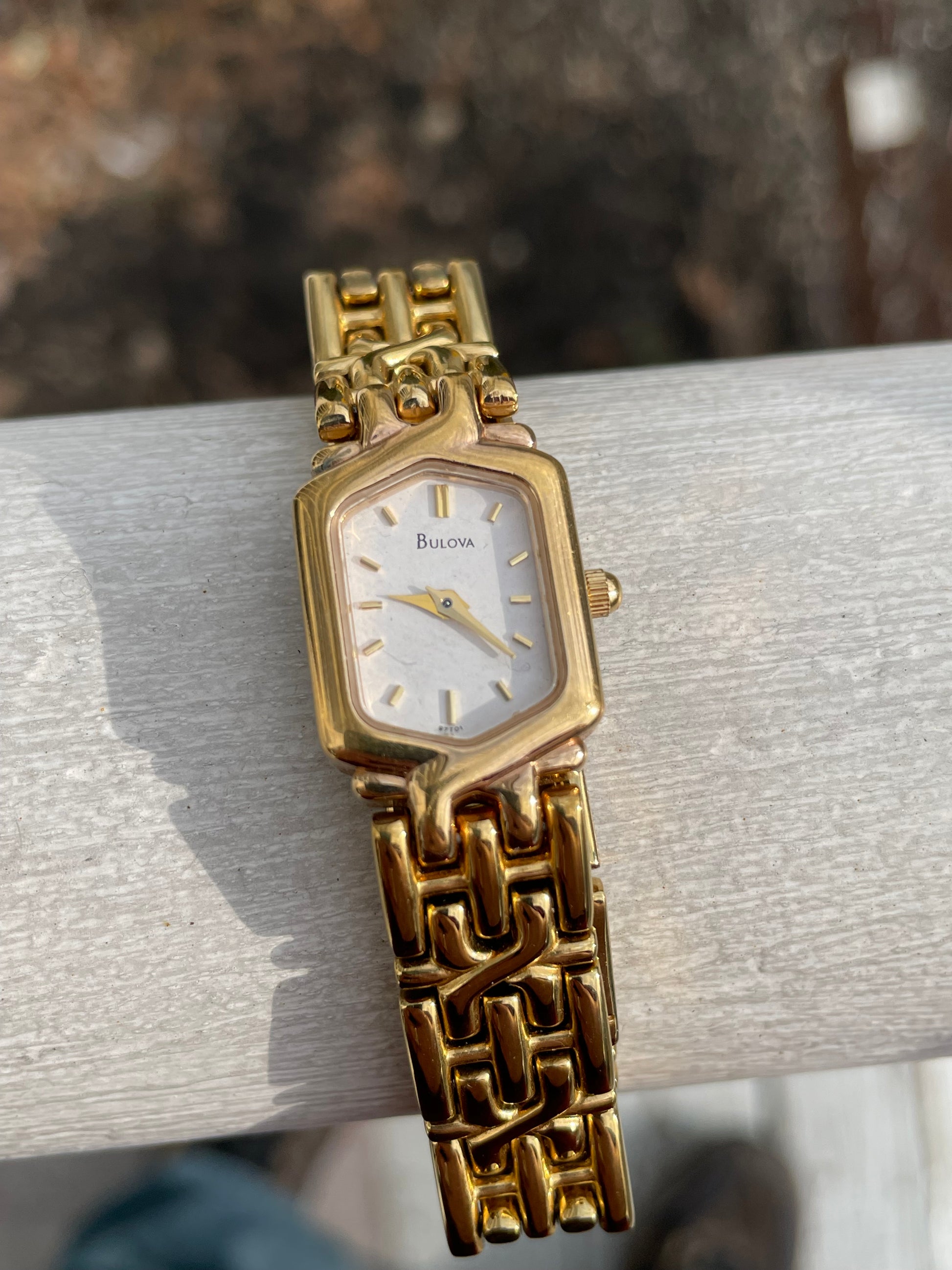Ladies Goldtone Bulova Watch. Restored. Everything working great. New battery just installed. Wrist size as it sits is a 6.5” but I include 4 extra links to allow you to make it larger wrist if needed.