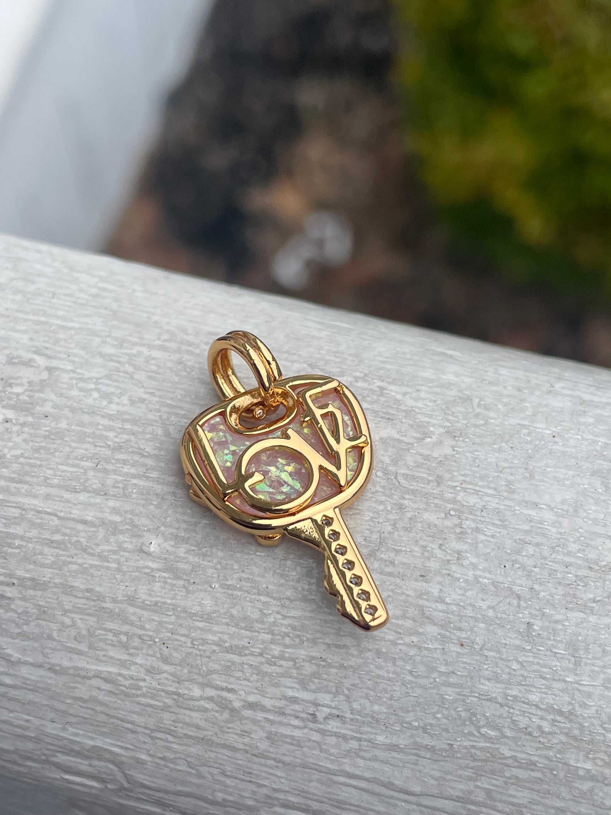 Pandora Shine Pink Opalescent Love Key Pendant Charm