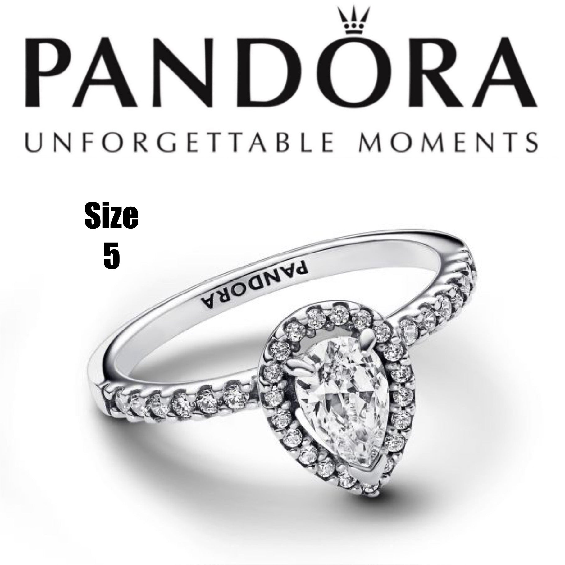 Pandora Sparkling Pear Halo Ring 192835C01 Size 5