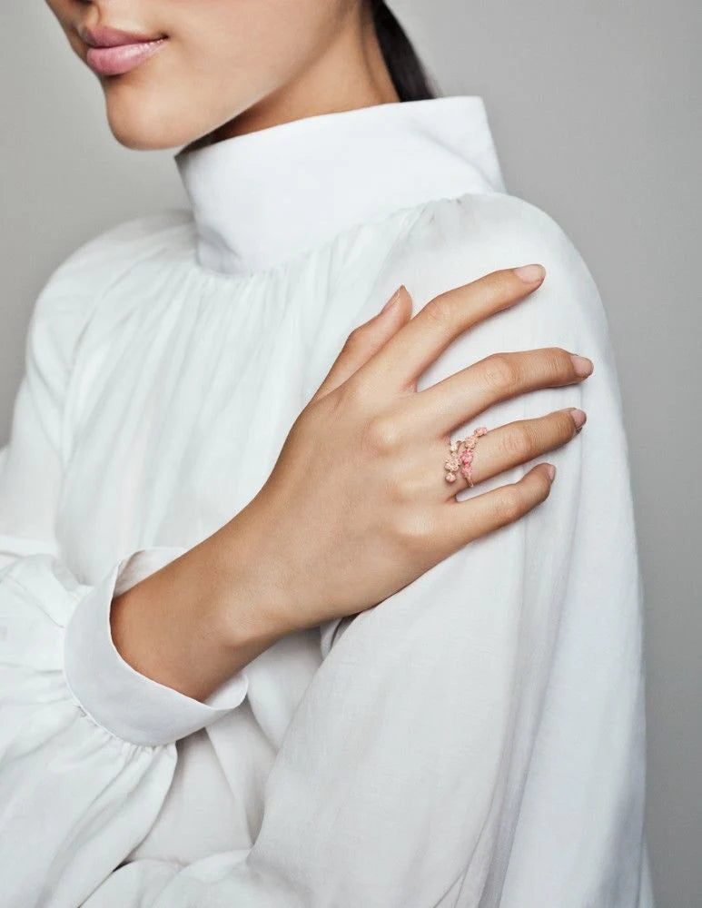 Retired Pandora Asia Exclusive Wraparound Peach Blossom Ring Size 7