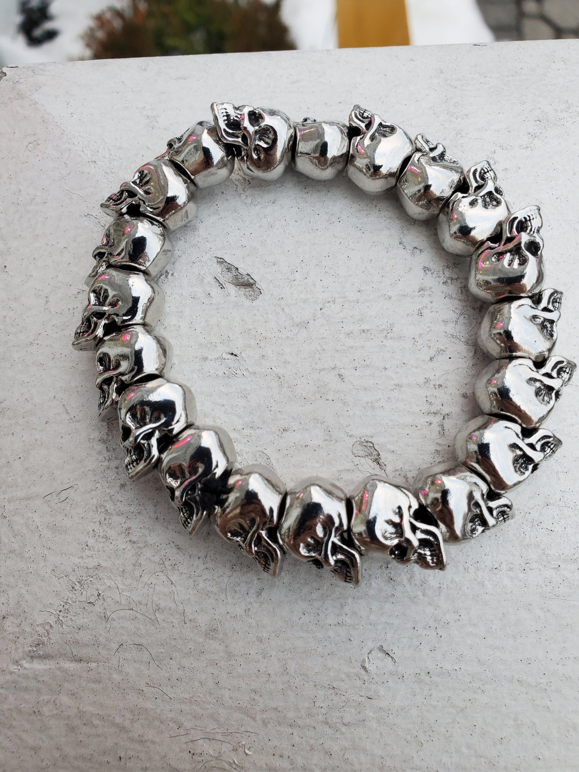 This Stainless Steel Adjustable Stretch Unisex Skull Head Bracelet adds a touch of edgy style to any outfit. Its durable stainless steel construction and adjustable stretch design make it both comfortable and versatile. Perfect for any skull-loving fashion enthusiast!