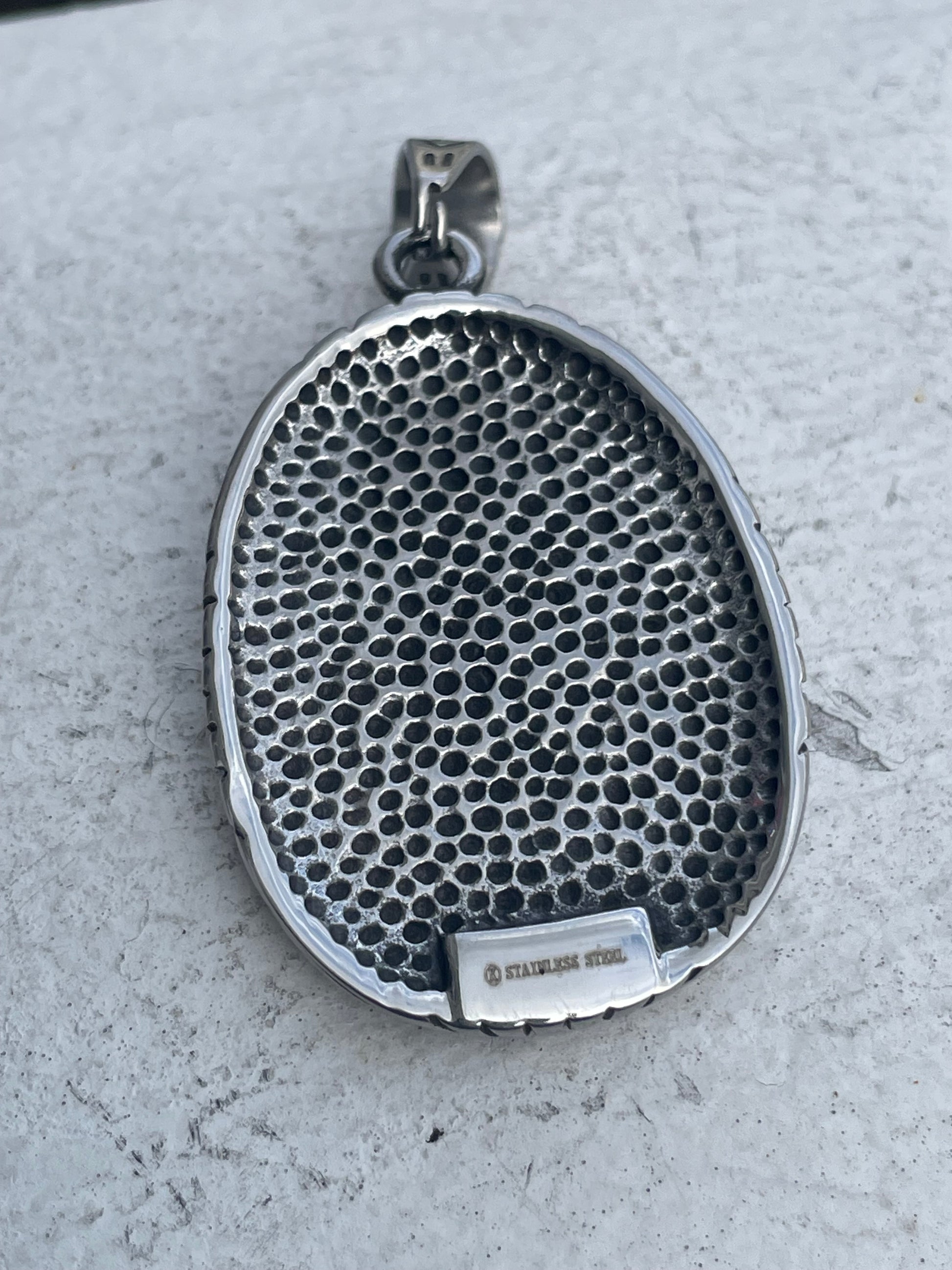Stainless Steel Faux Turquoise Eagle Pendant. 2.25”x1.00”