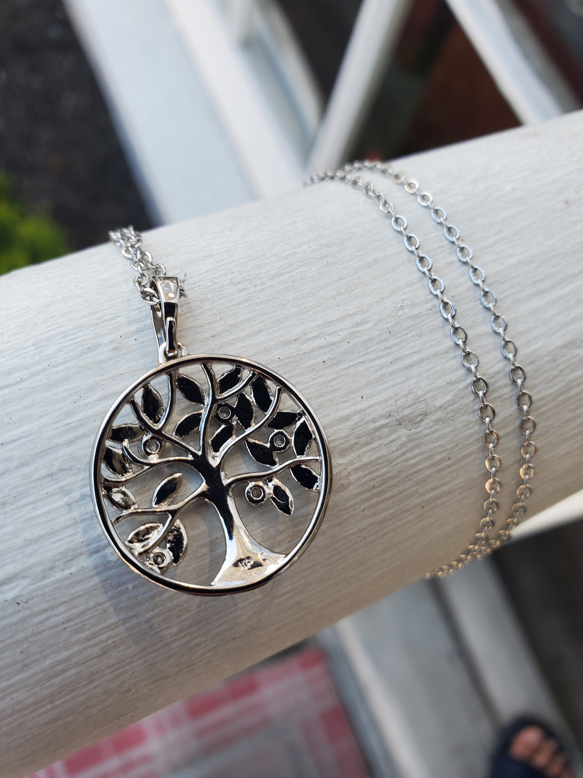 Stainless Steel Ladies Family Tree of Life clear zirconia Necklace