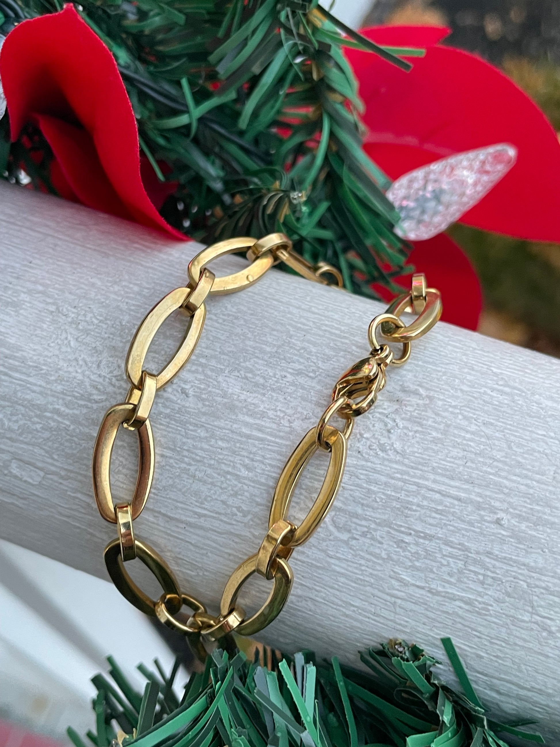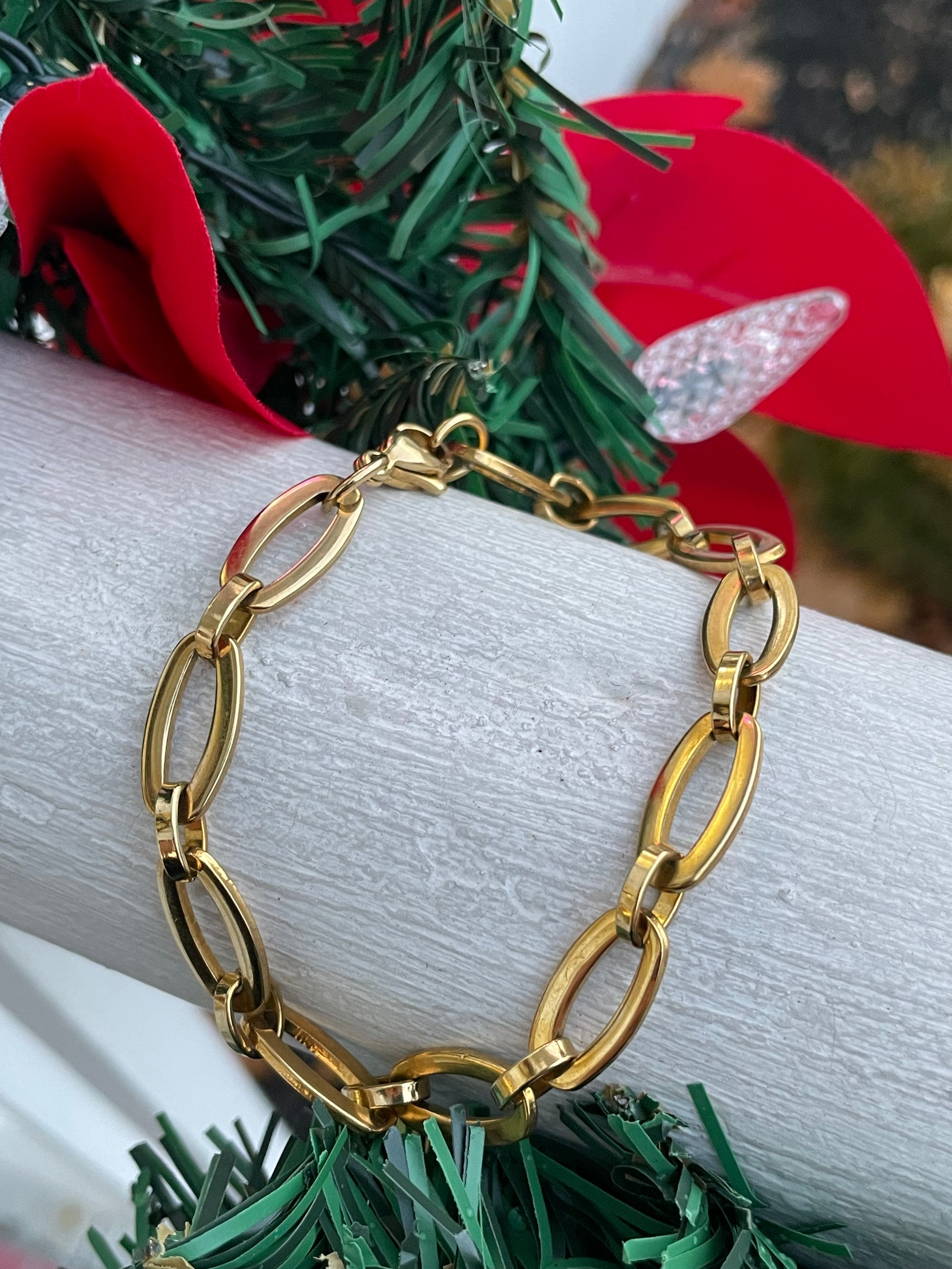 Stainless Steel Large Oval Paperclip Link Bracelet 8.5”. Lobster claw lock