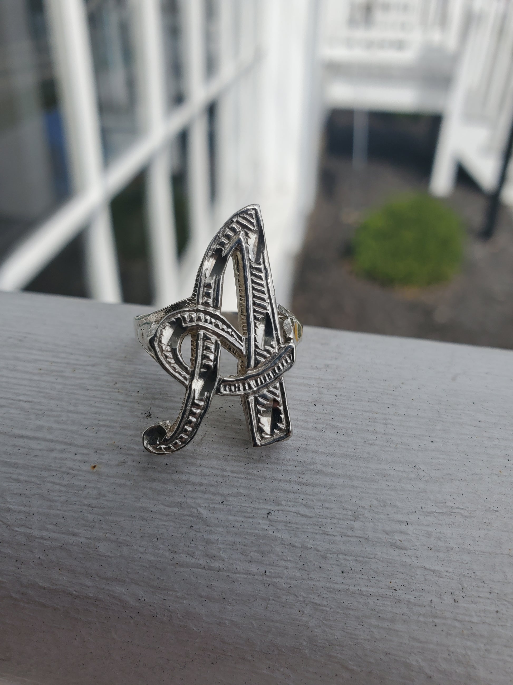 Sterling Silver Vintage Double Plated A Initial Ring sz:8