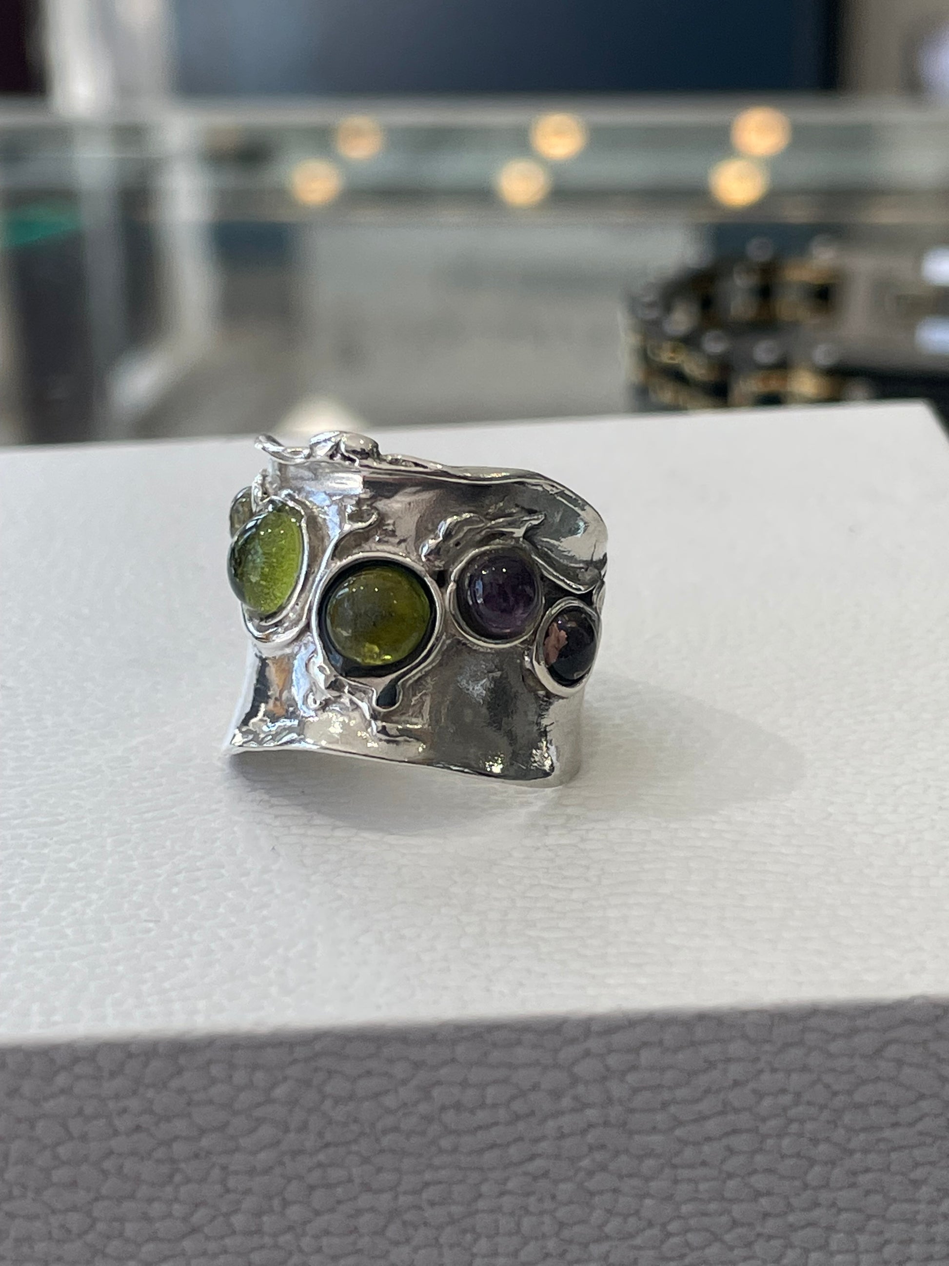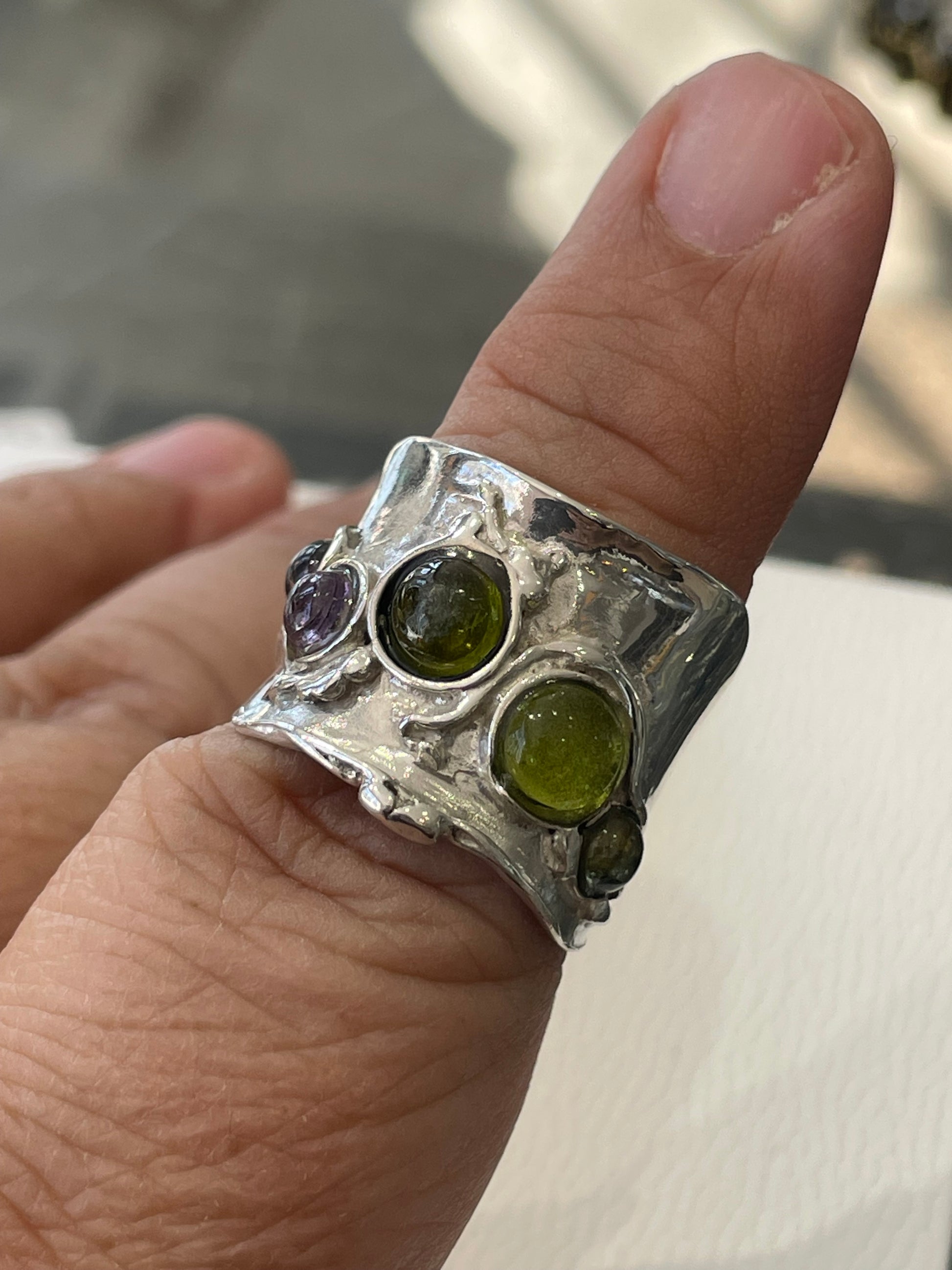 925 Sterling Silver Handmade Peridot & Amethyst Band Ring