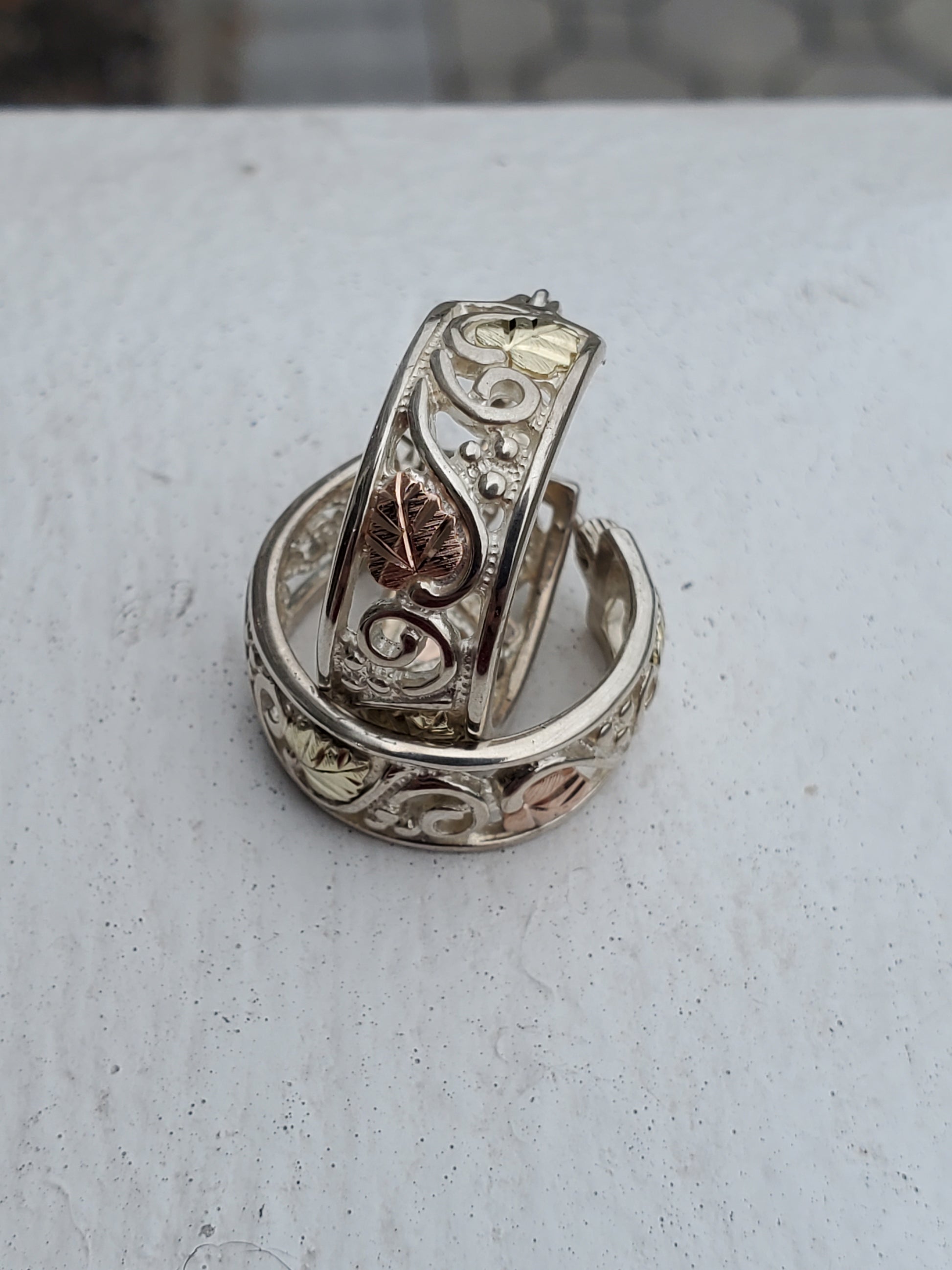 925 Sterling Silver & 12k Black Hills Gold Leaf Filagre Hoop Earrings