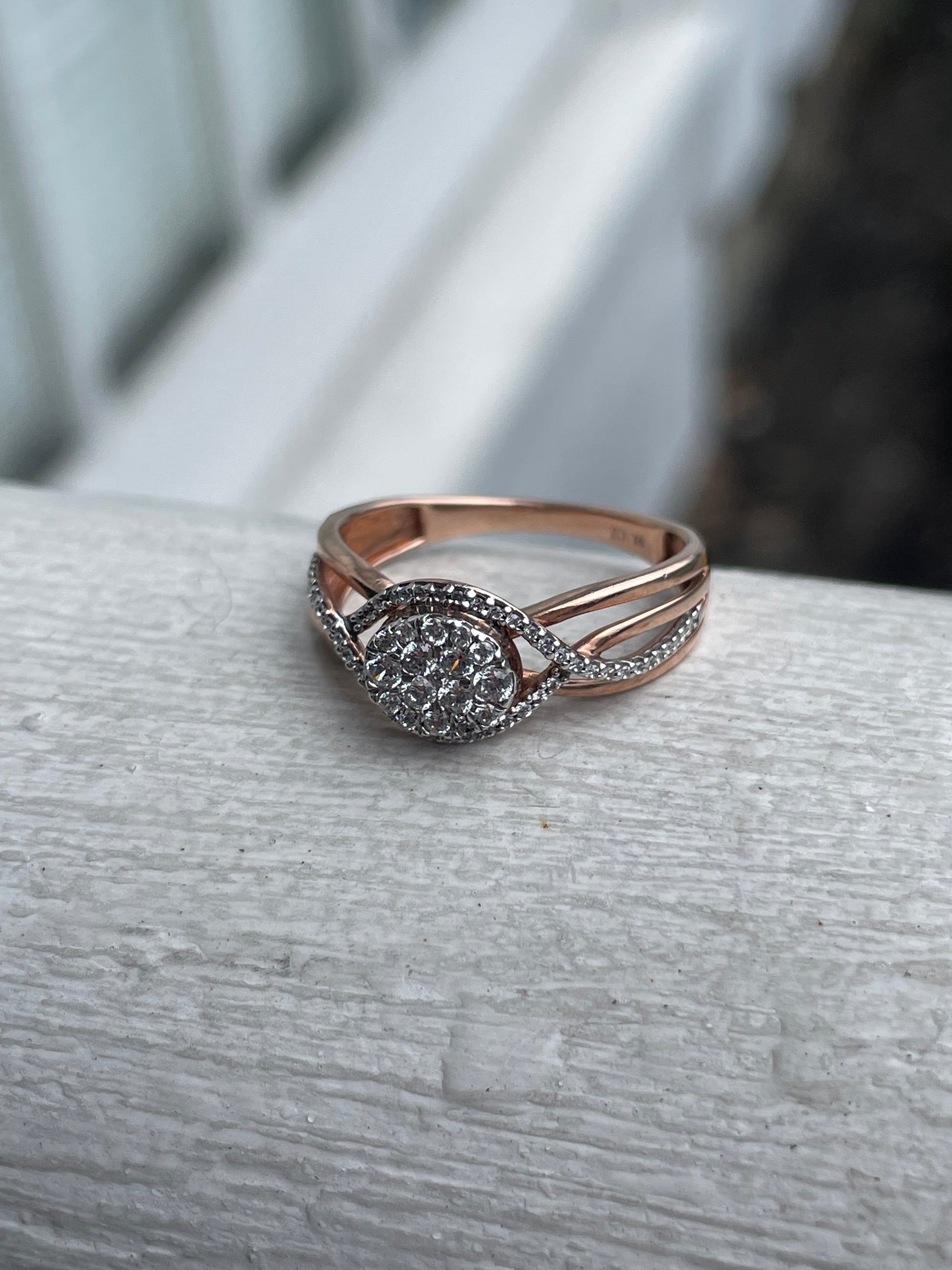9k Rose Gold Infinity Diamond Cluster Ring Size 7. 0.60ct TCW diamond weight.