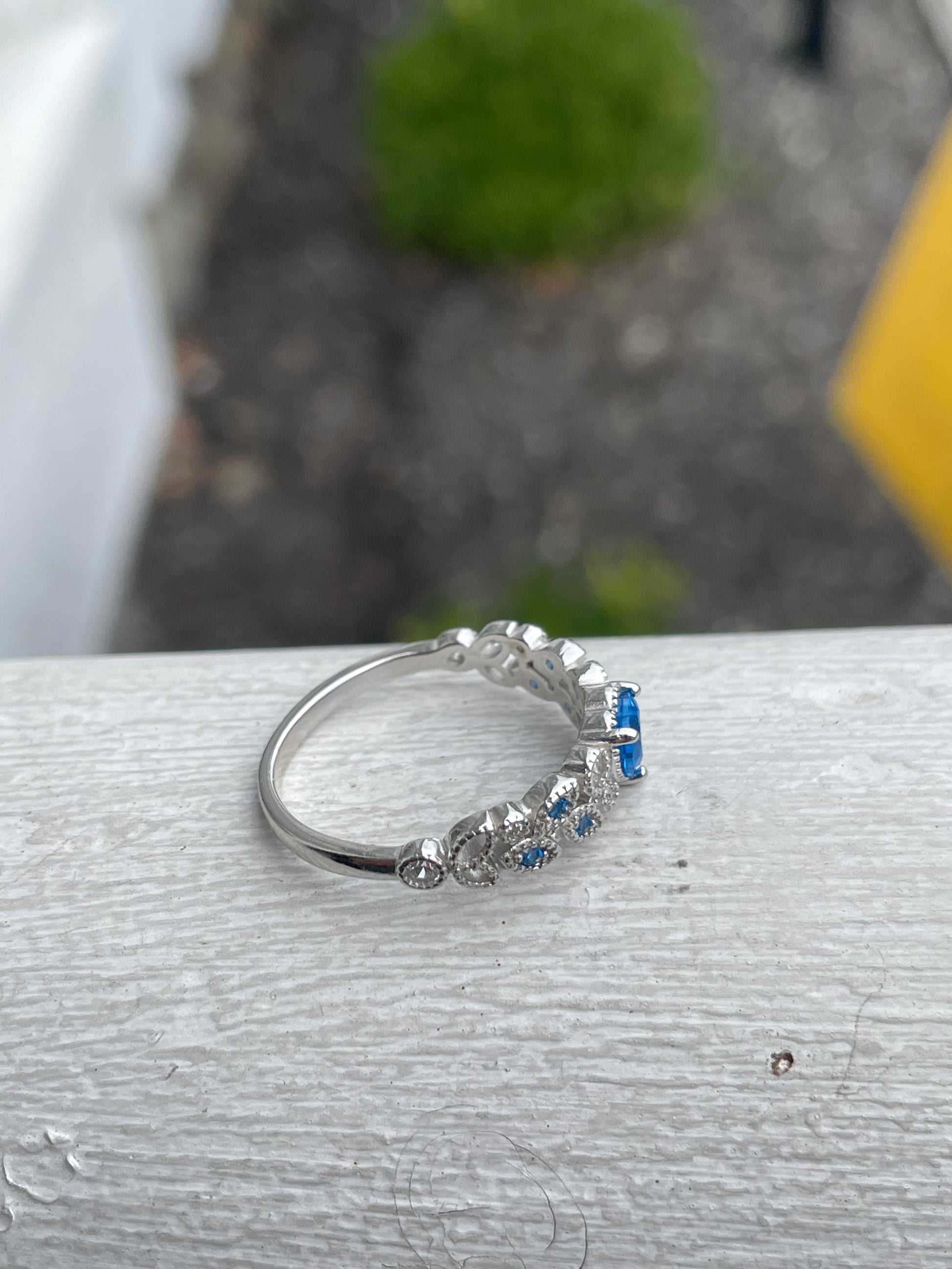925 Sterling Silver Blue Topaz Crystal Wreath Ring Size 9