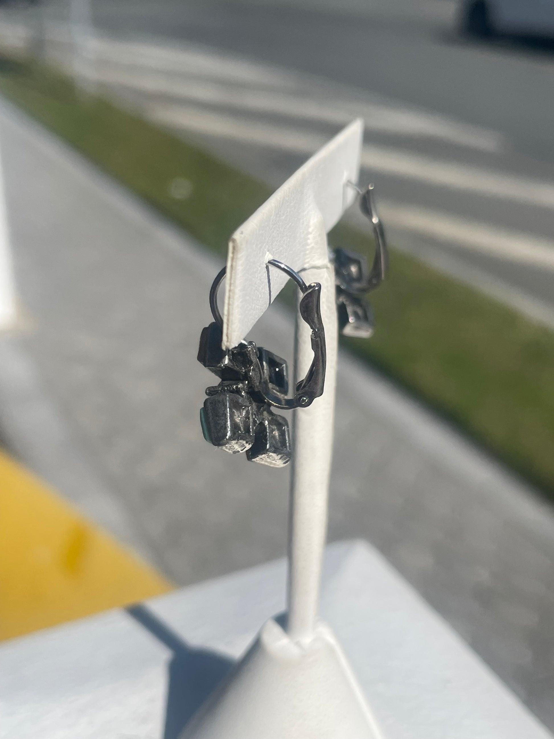 Vintage 925 Sterling Silver Turquoise, Carnelian, and Brown Quartz Cluster Dangle Earrings